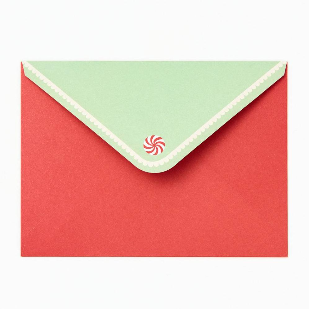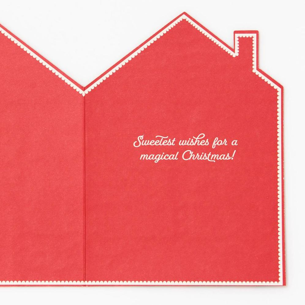 Send a sweet message this holiday season. Die-cut card features a beautiful gingerbread house design with glitter icing details. Inside sentiment reads. Sweetest wishes for a magical Christmas! Folded card. Paired with cute matching envelope. Designed by Paper Source.