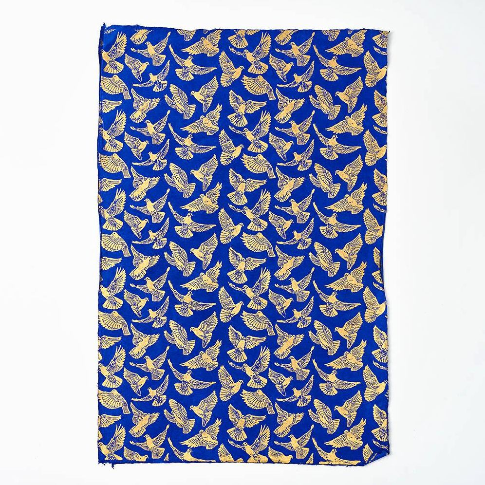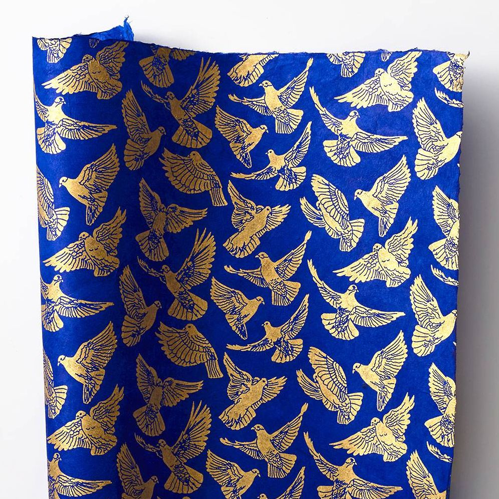 Create a unique wrap or lovely craft project featuring this beautiful handmade paper with a gold foil bird design and a lovely sapphire paper. Made from the renewable fibers of the Lokta plant. this fine paper is also a green choice for your projects!