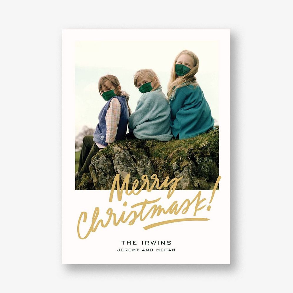 Wish your loved ones Merry Christmask. and to all an unprecedented night with this cheeky holiday card. featuring your favorite family photo. Designed by Cheree Berry for Paperless Post.