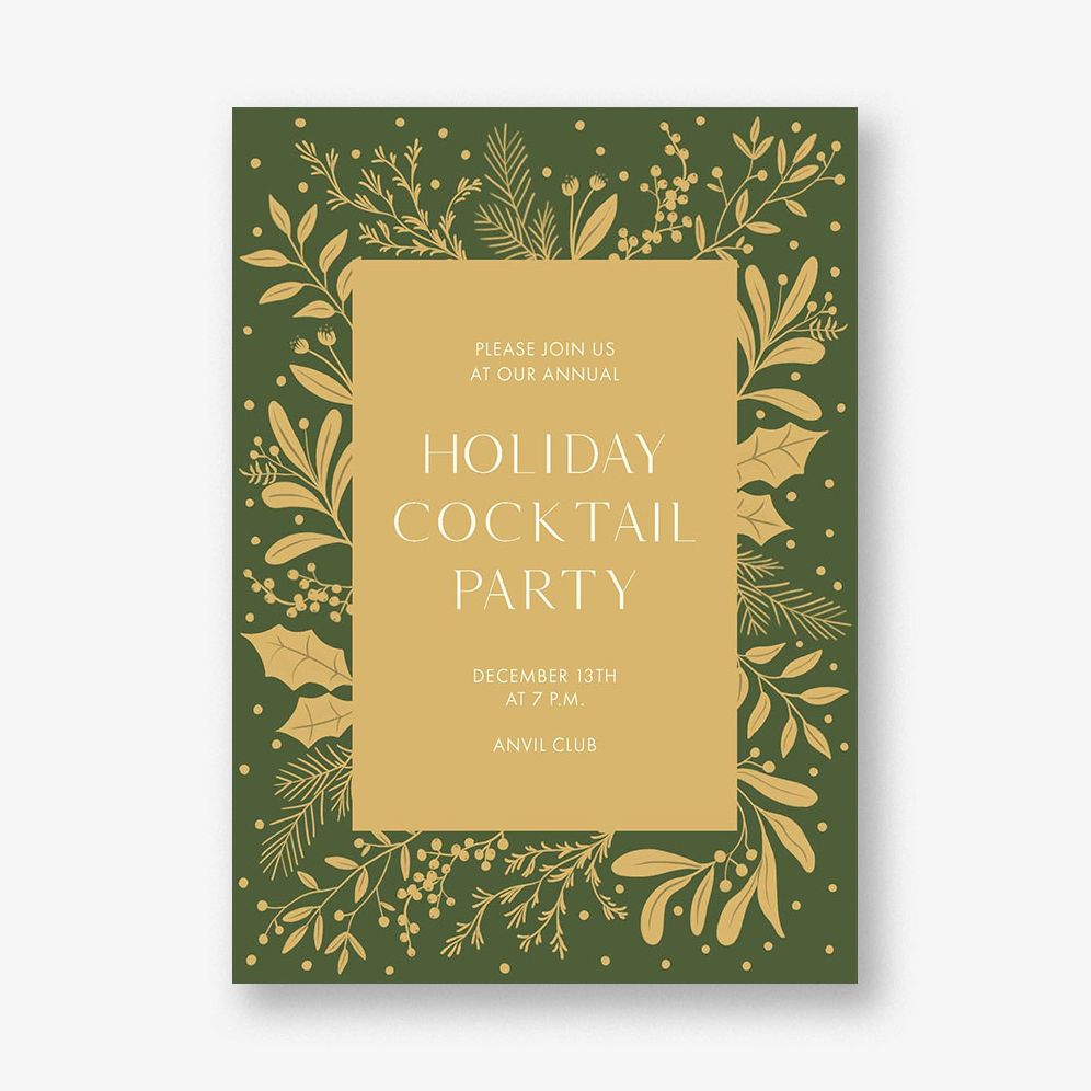With it’s elegant golden foliage this card is the perfect way to brighten up any holiday celebration. Printed on Mohawk 120.0 lb Superfine Ultra White. This paper is FSC certified. with 30% post consumer recycled content. and made using wind power. Looking for something speedier than snail mail? You can with our partners at Paperless Post.
