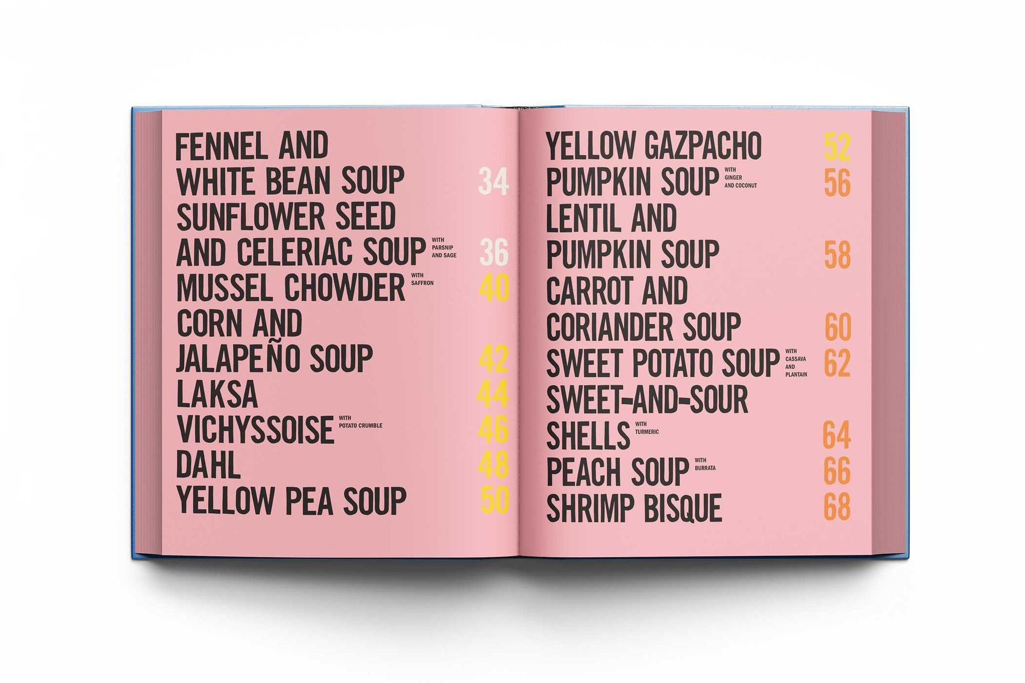An ode to soup in all its forms. this vibrant cookbook features weekly recipes for comfort all year round. including thai coconut soup. mushroom cream soup. gazpacho. and goulash. Not a week can go by without a delicious bowl.