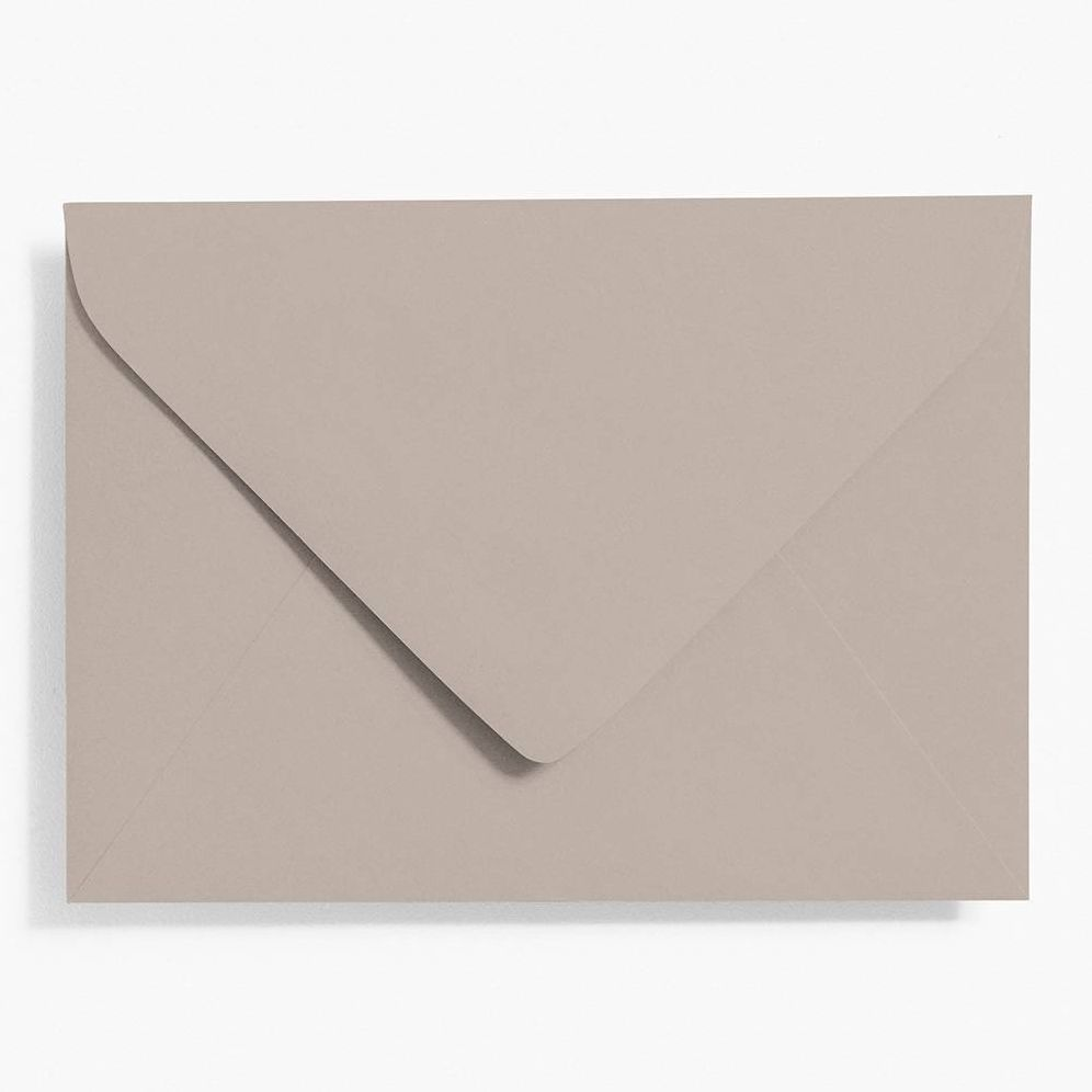 Our stylish European inspired pointed flap envelope in the classic wedding size. In gravel. the consummate urban color. Dark. dirty and complex. gravel looks great with black.