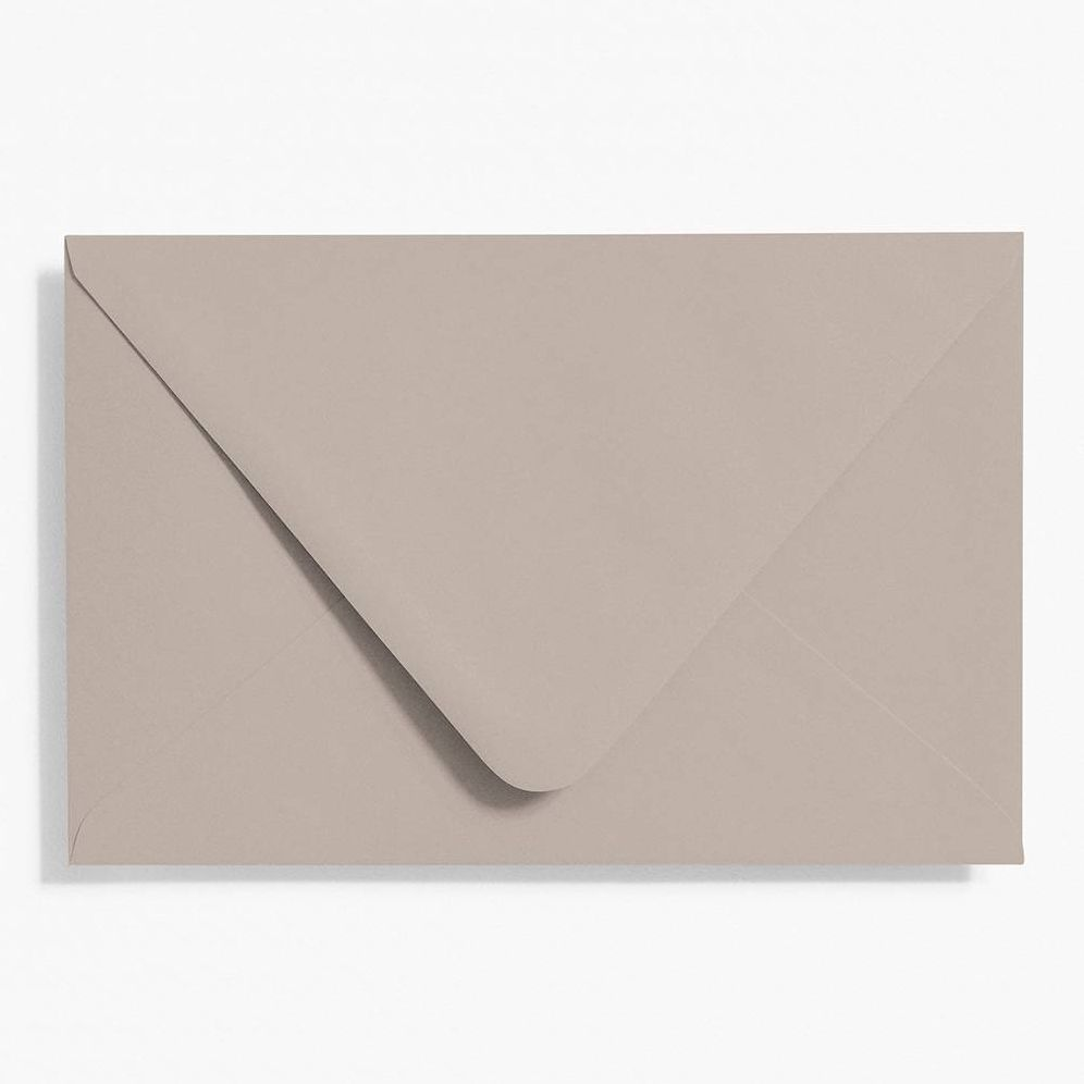Our stylish European inspired pointed flap envelope that so conveniently fits an 8 1/2 x 11 folded in half. In gravel. the consummate urban color. Dark. dirty and complex. gravel looks great with black.