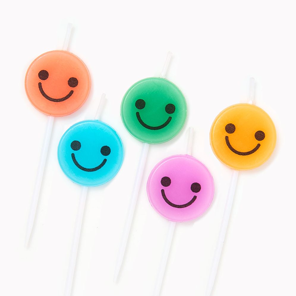 This five-pack of happy face candles is the perfect way to celebrate. birthdays. graduations or any other occasion. Great for decorating cakes or other treats. they’re a fun way to get the party started.