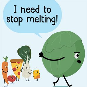 As his anxiety grows and grows. and he tries to find a way to stop melting. his fellow food friends try to help him cool down in a different way.