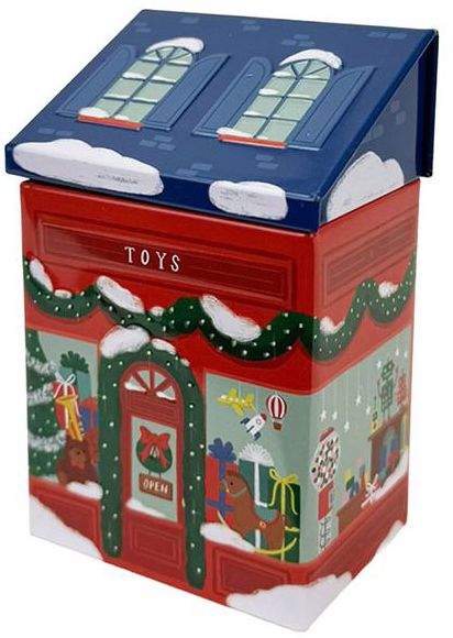 This whimsical toy shop tin scented candle features an original illustration and a unique festive scent. The lid doubles as a roof. making it the perfect addition to your holiday decor.