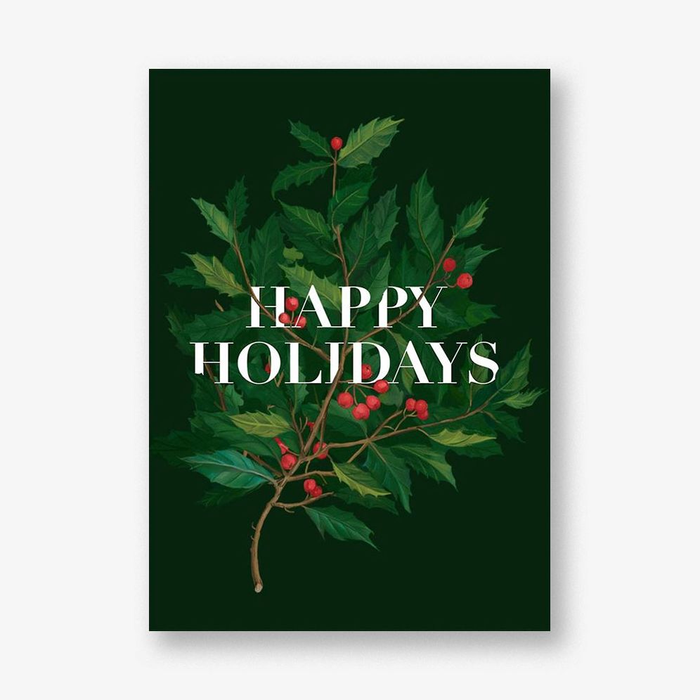 Share a sweet holiday sentiment with those you love. This personalized holiday card by Paperless Post is a classic. featuring holly branches with text overlay.