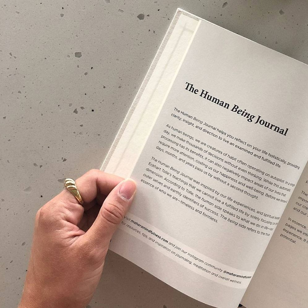 The Human Being Journal by Mahara Mindfulness. is the go-to. non-dated. monthly journal for those looking to level up. manage stress and maximize their potential. With guided questions and resources rooted in the fundamental pillars of a happy life??including health. spirit. career. and relationships??the journal bridges the gap between our human selves and the deeper sense of being so many of us are craving in this modern world. The journal was inspired by the founders’ life experiences and the spiritual teachings of Eckhart Tolle. It invites you to explore ten key elements that capture the full human being experience. The human side speaks to what we do in our life??our outer selves and earthly identifiers of success such as our careers. health. relationships. community. travel and finances. The being side refers to the true essence of who we are??timeless and formless. This includes our spirit. mind. creativity. passion and how we give back to the world. It is only when we bridge both worlds that we can unleash our full potential.