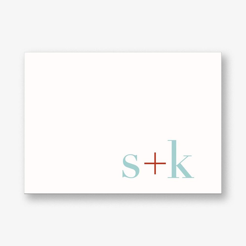 The lowercase monogram of this folded stationery offers a fresh. contemporary look. Perfect for notes from a couple.
