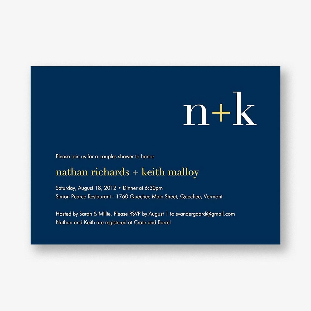 Here’s to the happy couple! Celebrate their pending nuptials with this modern couples shower invitation that pairs simple lettering with bold color for a perfect match. Printed on white 130 lb cover paper with a tactile vellum finish. 100% post-consumer waste. FSC certified.