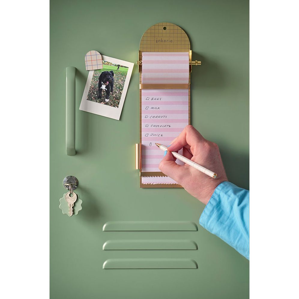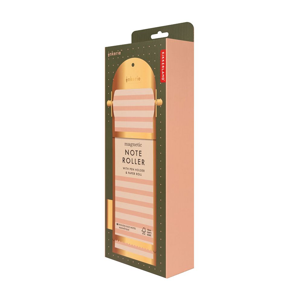 Sleek magnetic roller note dispenser is perfect for dorms. offices. kitchens. or hobby spaces. Include pen holder.