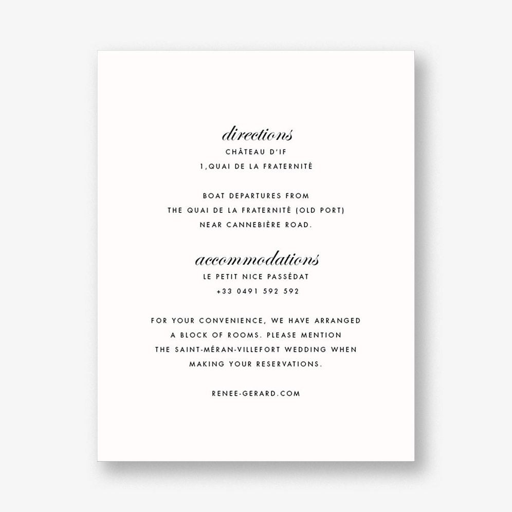 If your wedding theme revolves around elegance. this Paperless Post info card is perfect for you. Printed on Mohawk superfine white 130 lb. card stock that is soft to the touch and matches our superfine white envelopes. Paper is FSC certified and made using wind power.