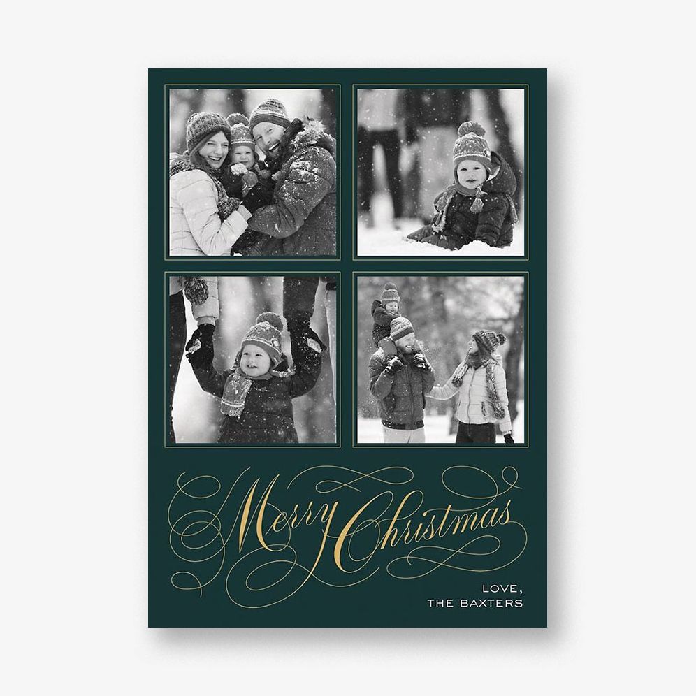Let those you love know that you’re thinking of them with this personalized holiday photo card by Paperless Post. This card reads Merry Christmas and can be further customized with a message from you and your family. Printed on Mohawk ultra white 120 lb. card stock that is soft to the touch and matches our superfine white envelopes. Paper is FSC certified and made using wind power.