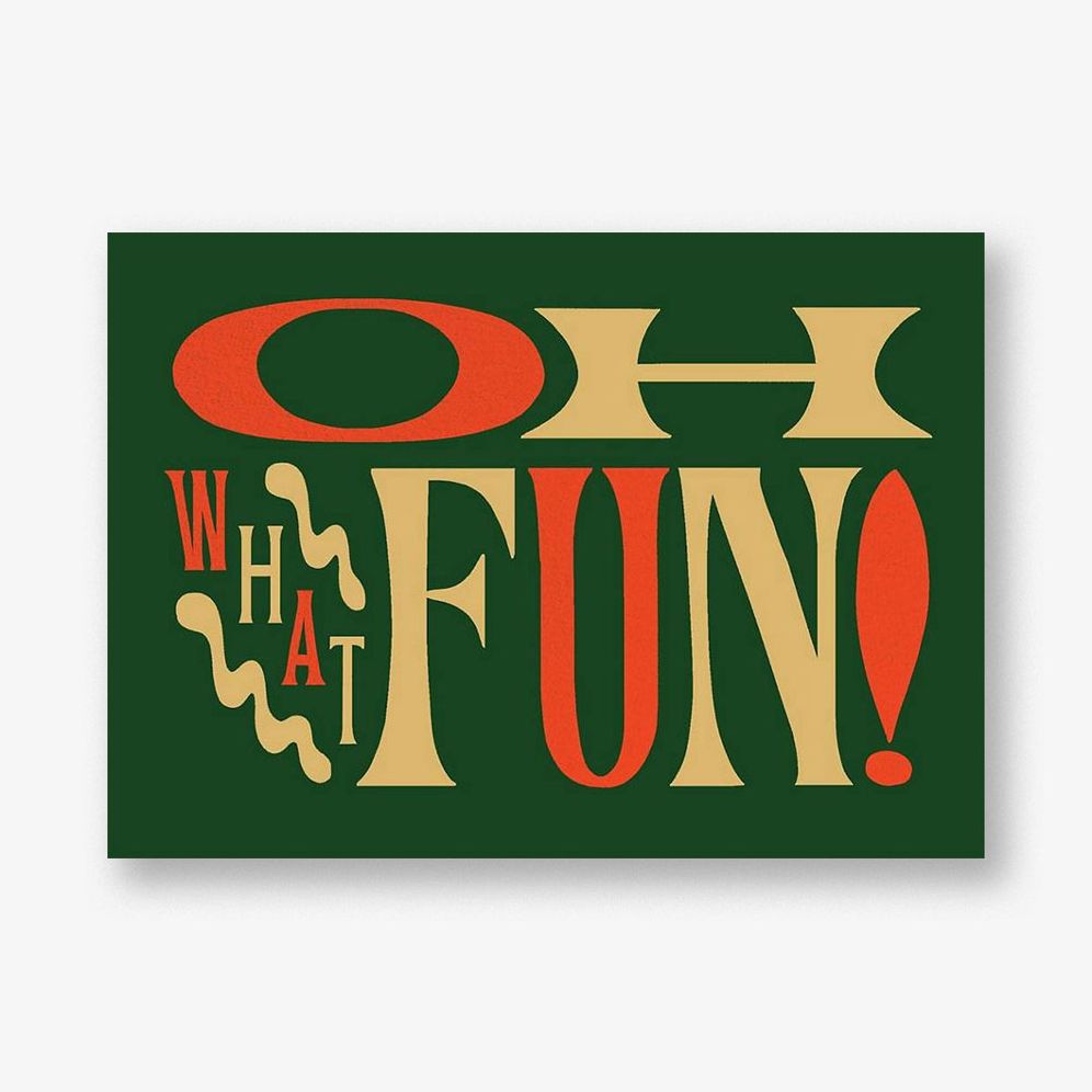 We’re feeling funky with this retro lettering and eye-catching color combination. Printed on Mohawk 120.0 lb Superfine Ultra White. This paper is FSC certified. with 30% post consumer recycled content. and made using wind power.