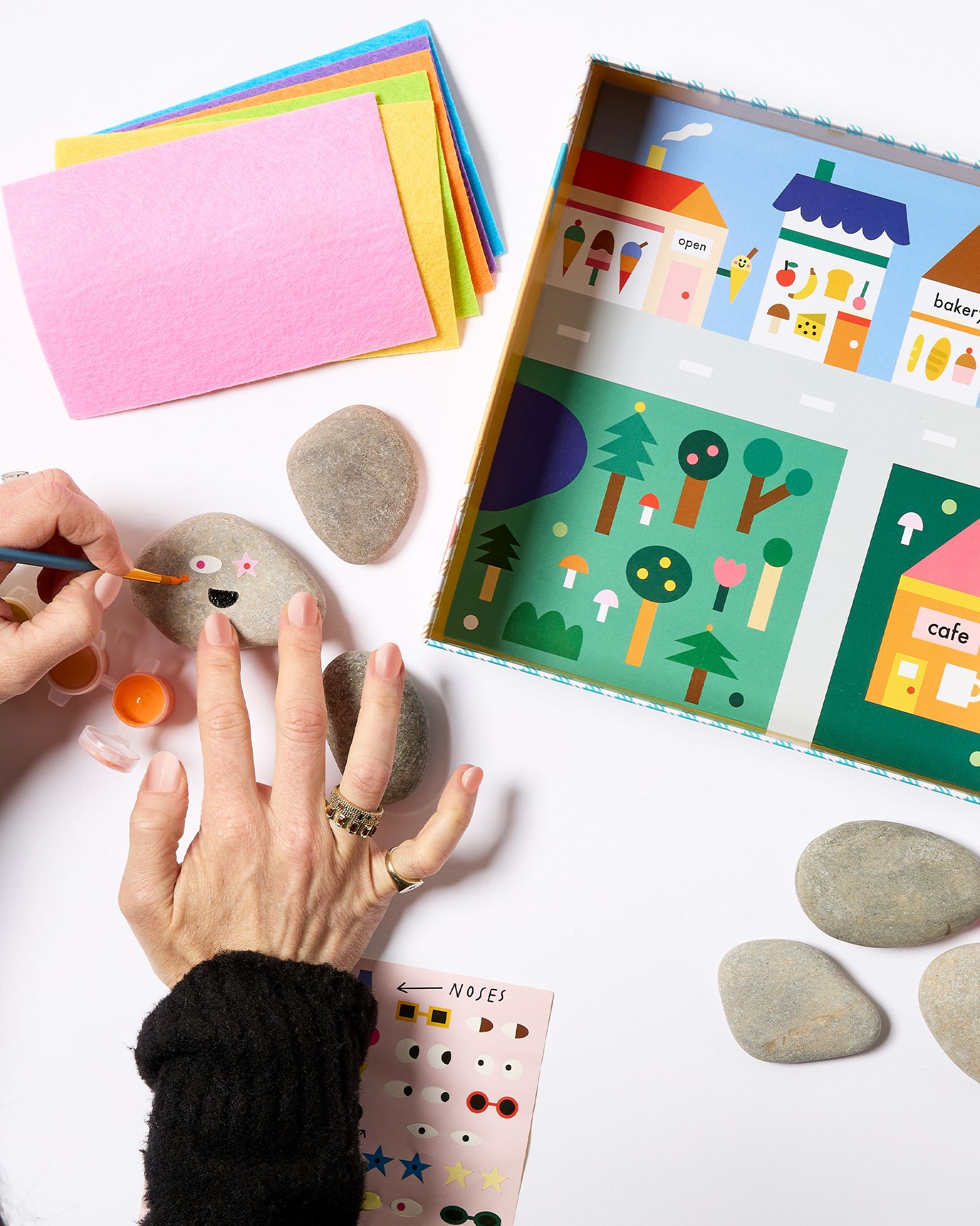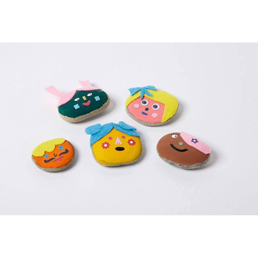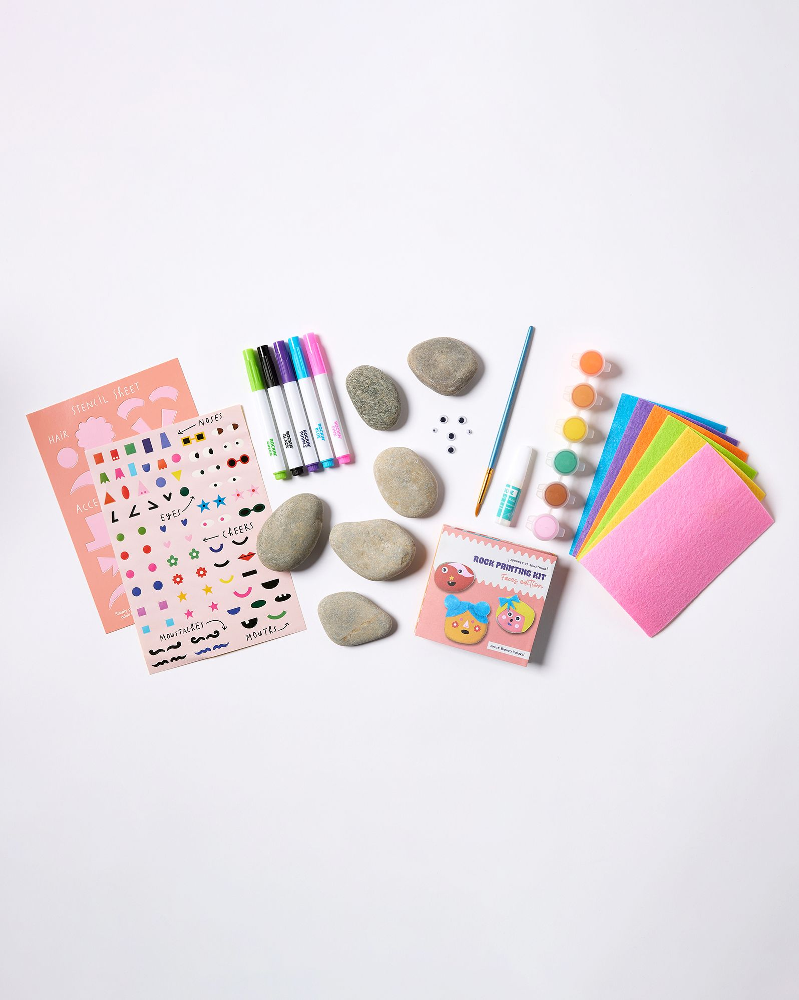 Make your own super cool rock people to share- hide them in the park or your garden. then go rock hunting. Hours of fun creative play time. Rock Painting Kit Includes: 6 x Rocks; 5 x Paint Markers; 1 x Sticker Sheet ; 1 x Stencil Sheet; 6 x Felt Sheets in Various Colours; 6 x Pots of Paint; 1 x Paint brush; 1 x Glue 2 x Sets of Googly Eyes . Inspirational Booklet