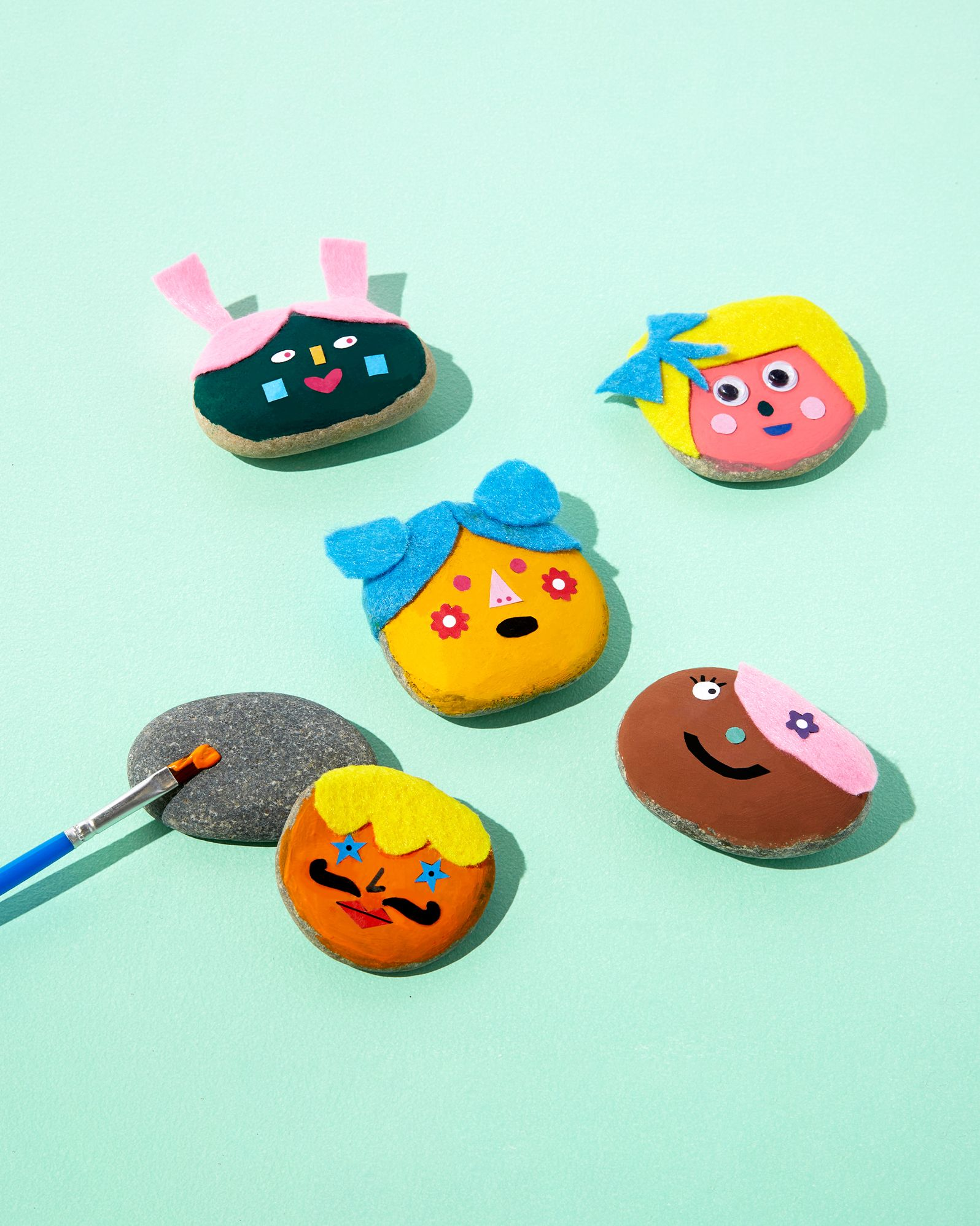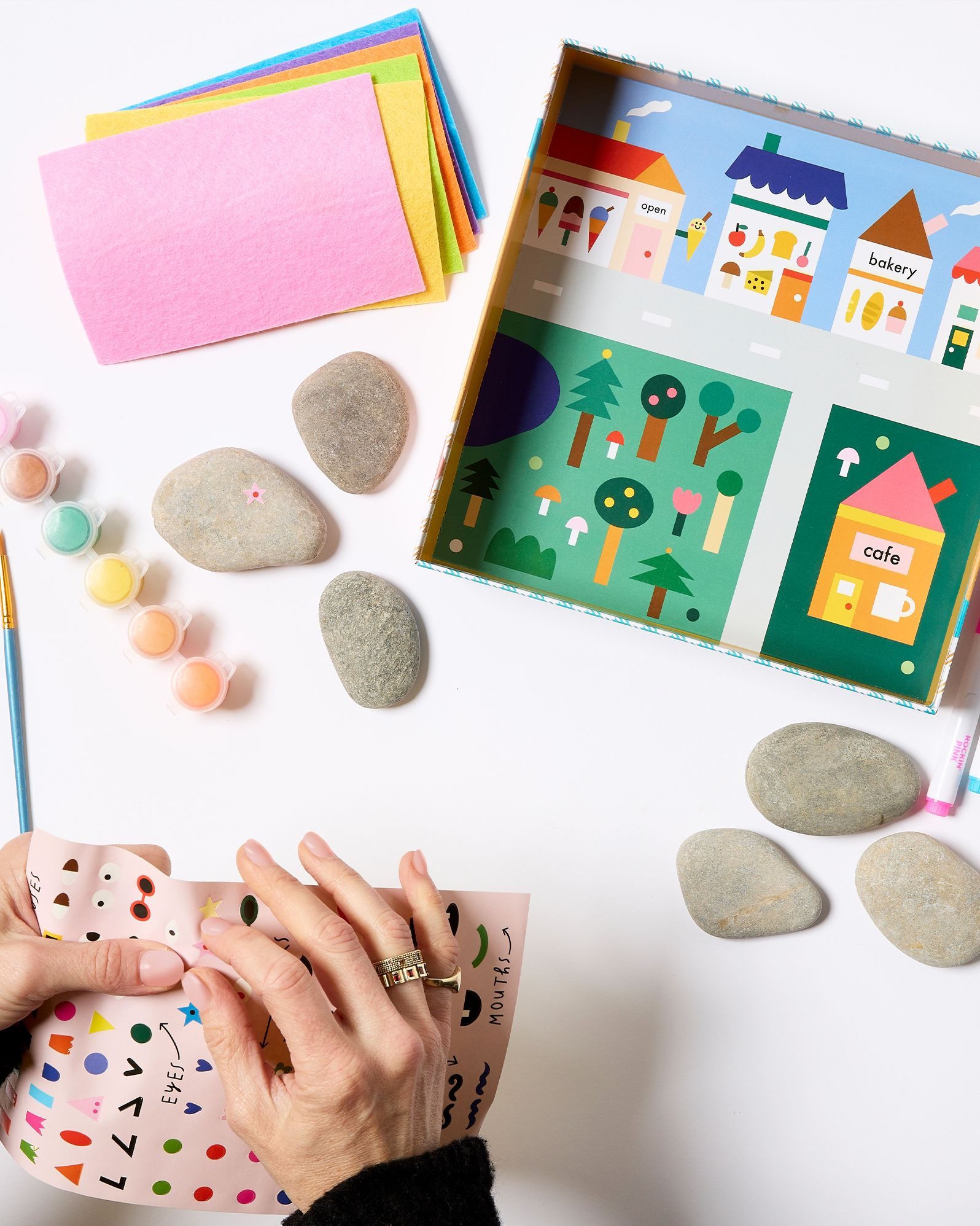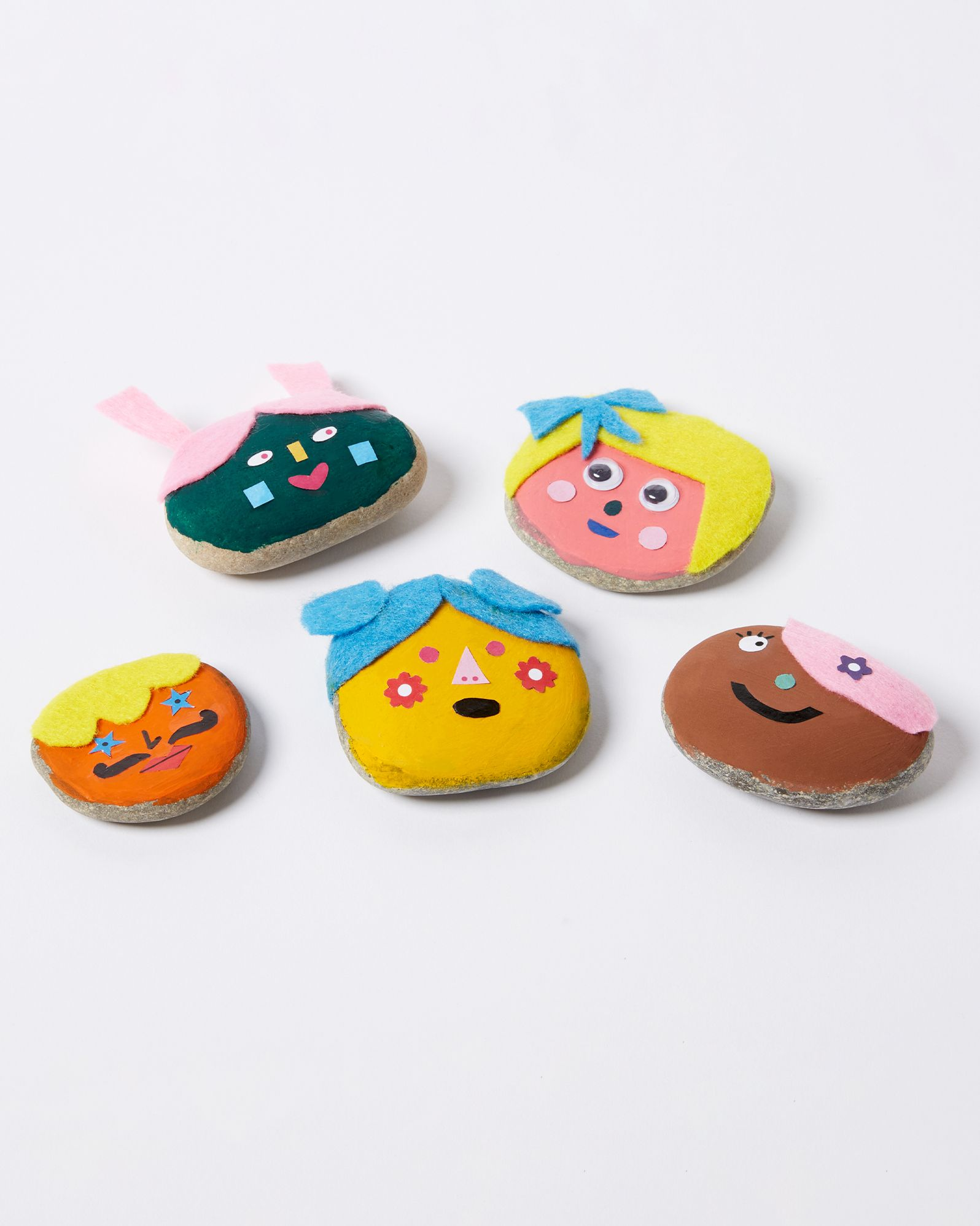 Make your own super cool rock people to share- hide them in the park or your garden. then go rock hunting. Hours of fun creative play time. Rock Painting Kit Includes: 6 x Rocks; 5 x Paint Markers; 1 x Sticker Sheet ; 1 x Stencil Sheet; 6 x Felt Sheets in Various Colours; 6 x Pots of Paint; 1 x Paint brush; 1 x Glue 2 x Sets of Googly Eyes . Inspirational Booklet