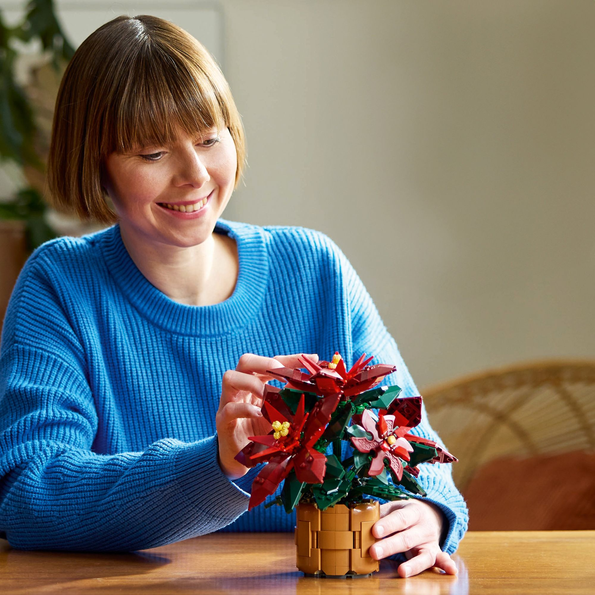 - Plant decor building set for adults Take time out or join friends and family for a relaxing building experience with the LEGO® Icons Poinsettia building set
