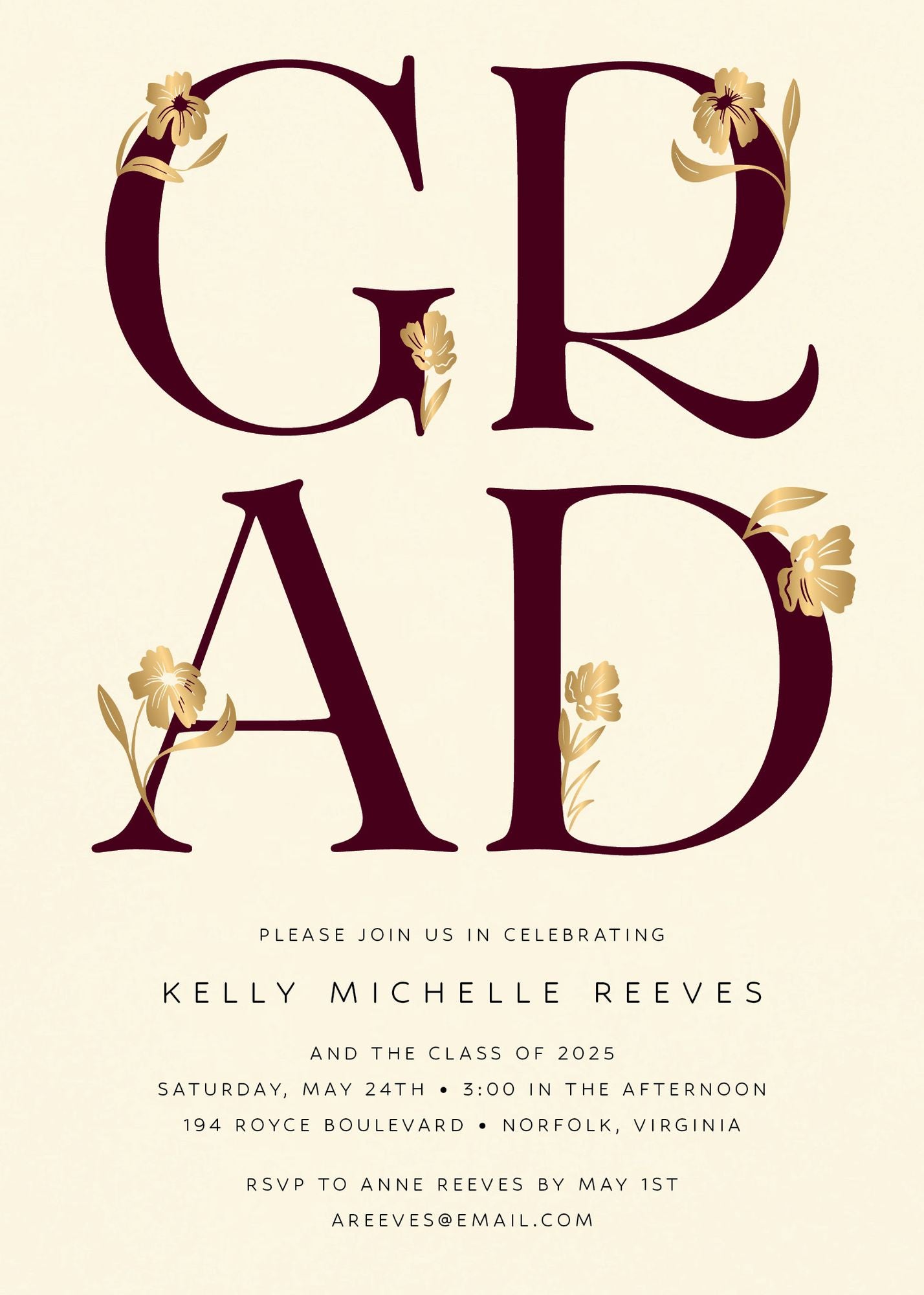 These shimmering foil florals and modern type make your big news tr??s chic.