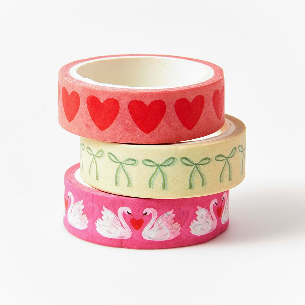 This set of 3 washi tape is adorable featuring hearts. bows. and swans!