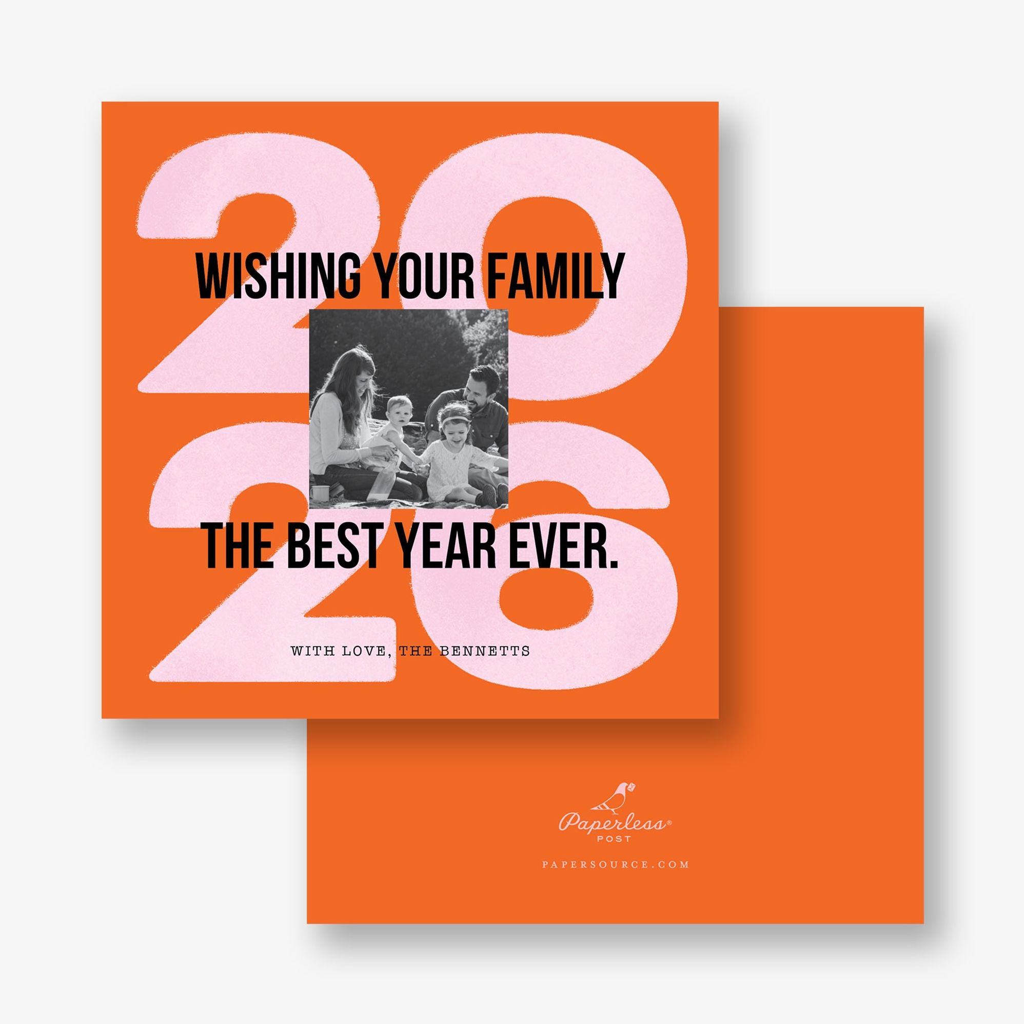 This card features a bold and attention-grabbing design that celebrates the luck and happiness of being together during this festive time. Printed on Mohawk 120.0 lb Superfine Ultra White. This paper is FSC certified. with 30% post consumer recycled content. and made using wind power. Please note: Due to the matte finish of our paper. photos may print slightly darker than they appear on your screen.
