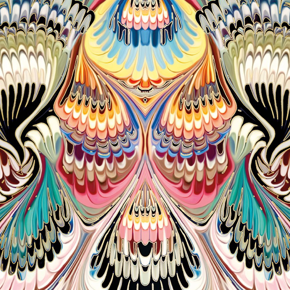 This wrap will make your next gift stand out. or it can be framed as stunning wall art. Artist Mary Katrantzou has created a multicolored marbleized design that brings butterfly or bird wings to mind. The entire design is accented with gold foil. Printed on heavyweight paper. the wrap sheet measures 27L x 20 W