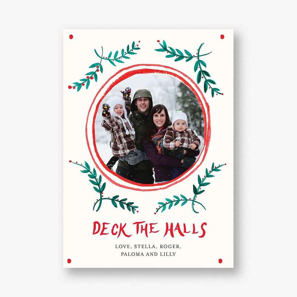 Merry boughs of holly deck the front of this charming holiday photo card featuring your family’s favorite picture. Designed by Cheree Berry for Paperless Post.