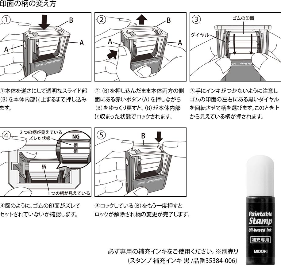 - A fun stamp that can be used to decorate notebooks. diaries. etc. by rotating it to select a pattern.