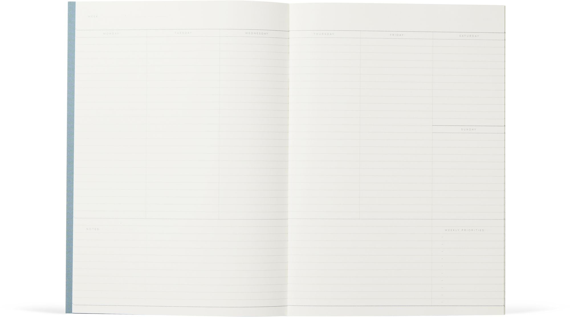 Milo weekly planner book. Your basic weekly planner for easy and functional overview. Size 9.3 x 6.7 inch. Printed on 100 g swedish non-bleeding paper. Undated fill-in vertical overview. 48 pages
