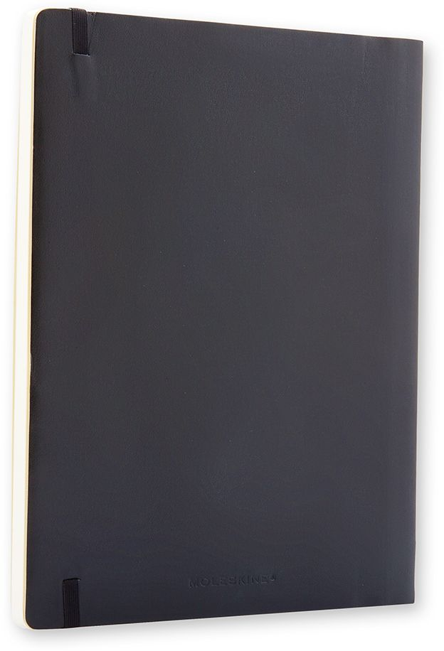 The Soft Cover extra large notebook with squared pages has a flexible yet sturdy cover that adapts to the movements of the body and fits comfortably in any pocket. This is a reliable travel companion. perfect for writings. thoughts and passing notes. Every Moleskine product is thread bound and has a soft cover with rounded corners. acid free paper. a bookmark. an elastic closure and an expandable inner pocket that contains the Moleskine history.