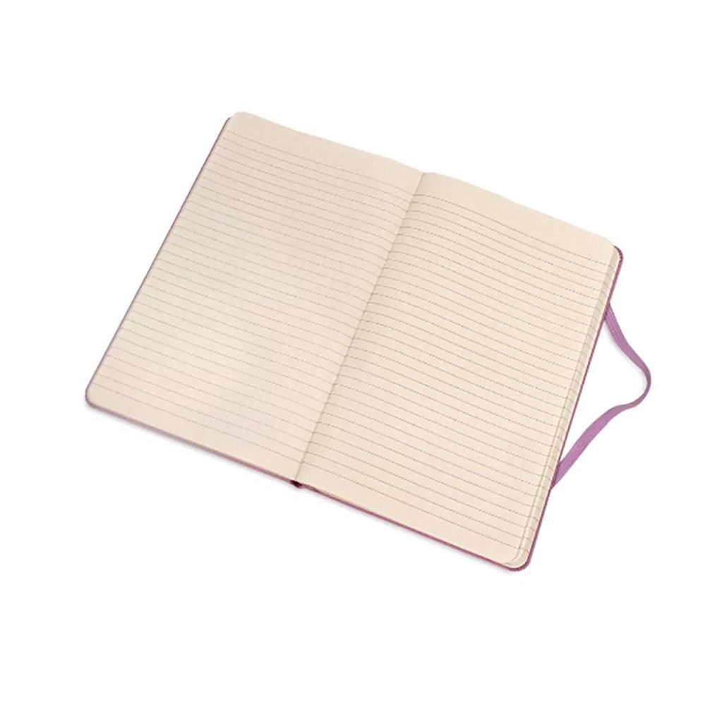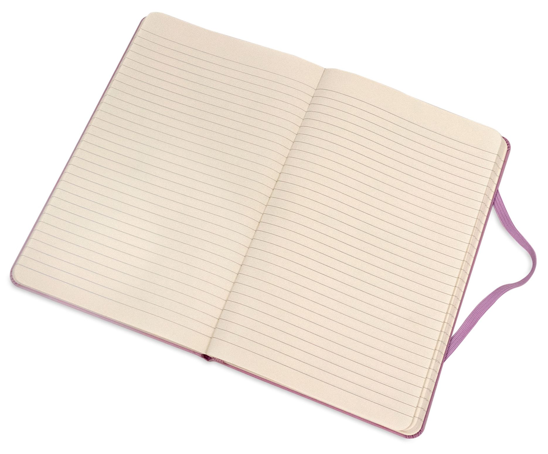 This basic. yet classic Large Ruled notebook is one of the bestselling Moleskine notebooks. This reliable travel companion. perfect for writings. thoughts and passing notes. has a cardboard bound cover with rounded corners. acid free paper. a bookmark. an elastic closure and an expandable inner pocket that contains the Moleskine history.