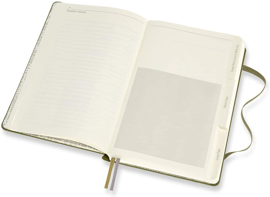 The Moleskine Traveller’s Journal is a structured before and after record of every journey you make. from weekends away to life-changing trips and everything in between. Note down your travel plans before you leave and list all the things you hope to see and do. then add maps. photos. tickets and keepsakes when you return. The Traveller’s Journal is a place to dream. get practical and create a unique and lasting paper archive of your travels that you’ll want to revisit again and again.
