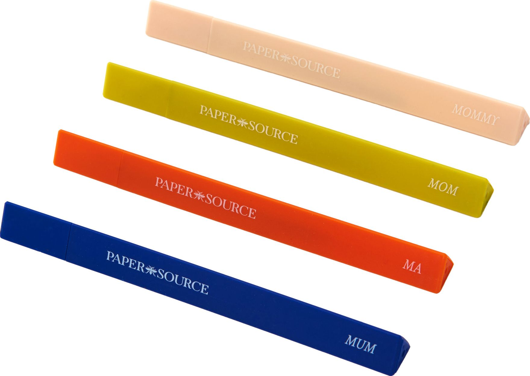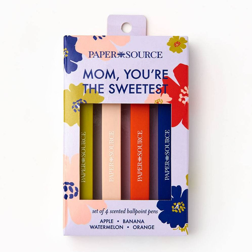 Show your mom how much you appreciate her with this fun scented pen set! Each of the 4 ballpoint pens has a different scent: apple. banana. watermelon. and orange. Printed on each pen is a different word for Mom.