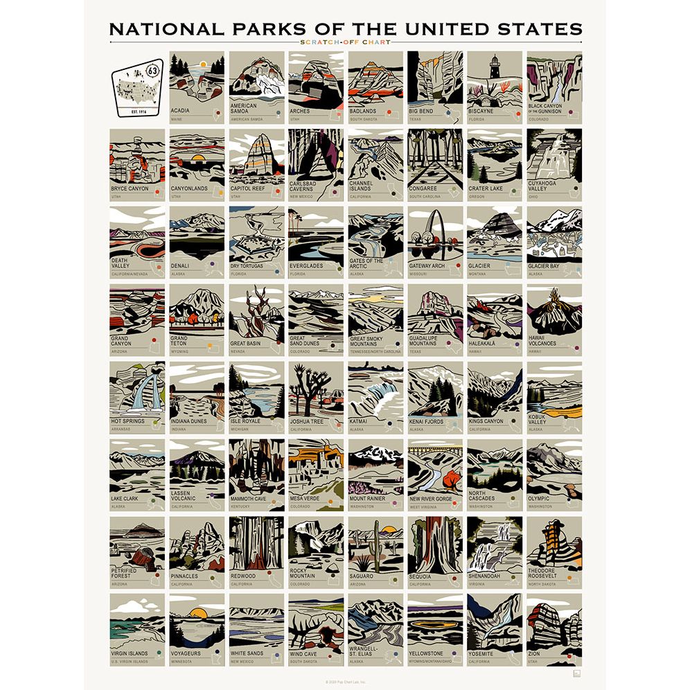 Track your travels to the 63 national parks of the US with this scenic scratch-off chart! Gently scratch the top layer off any site you’ve visited both to commemorate your journey and unveil a full-color vista underneath.
