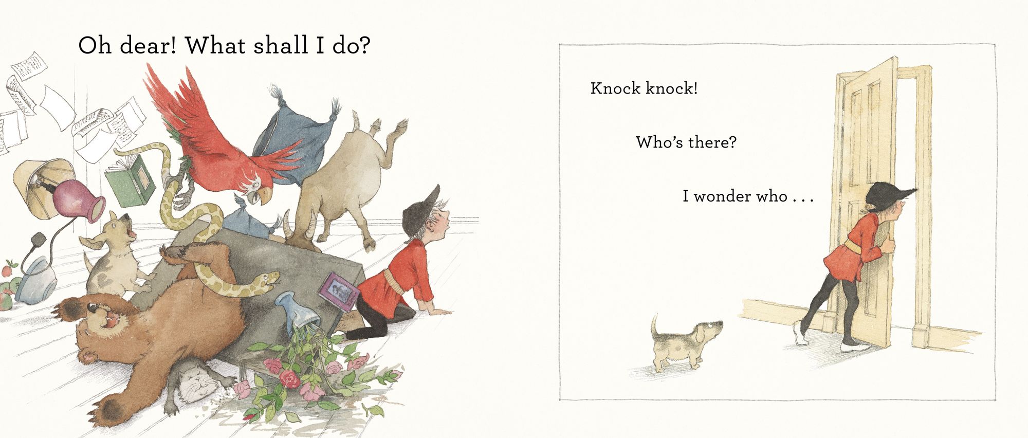 As a hapless boy goes from shop to shop. requesting a series of perfectly reasonable items??a hat. a coat. a cake. a chair??he finds himself thwarted at every turn. amassing instead a growing menagerie of animals who happily follow him on his errands. It’s not until he finally asks for a cup that he’s proffered a wriggly creature that solves his dilemma . . . or does it? Adding delicious momentum to Michael Rosen’s rhymes (and mastery of the page turn) are an expressive crew of animal characters rendered as only Helen Oxenbury can. making for a timeless story guaranteed to beg many repeat readings. Oh dear!