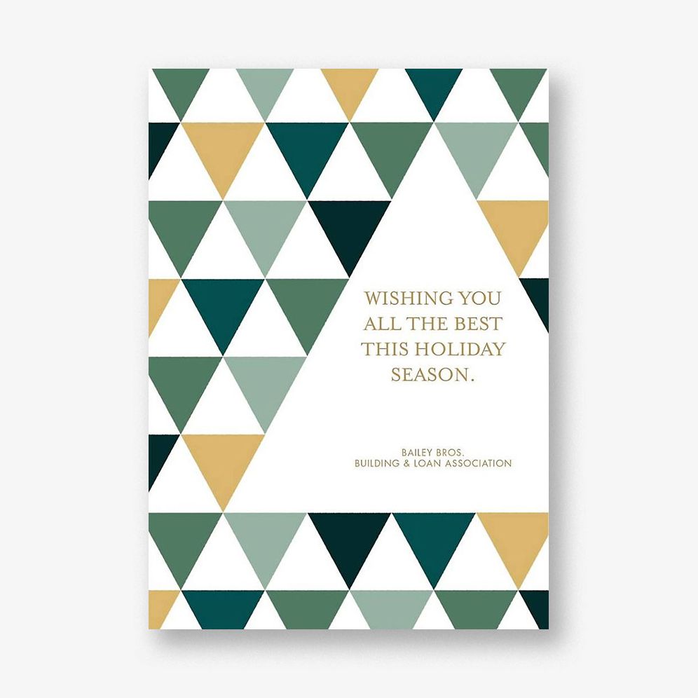 With its minimalist yet impactful approach. this card captures the essence of the holidays through clean lines and modern aesthetics. Printed on Mohawk 120.0 lb Superfine Ultra White. This paper is FSC certified. with 30% post consumer recycled content. and made using wind power.
