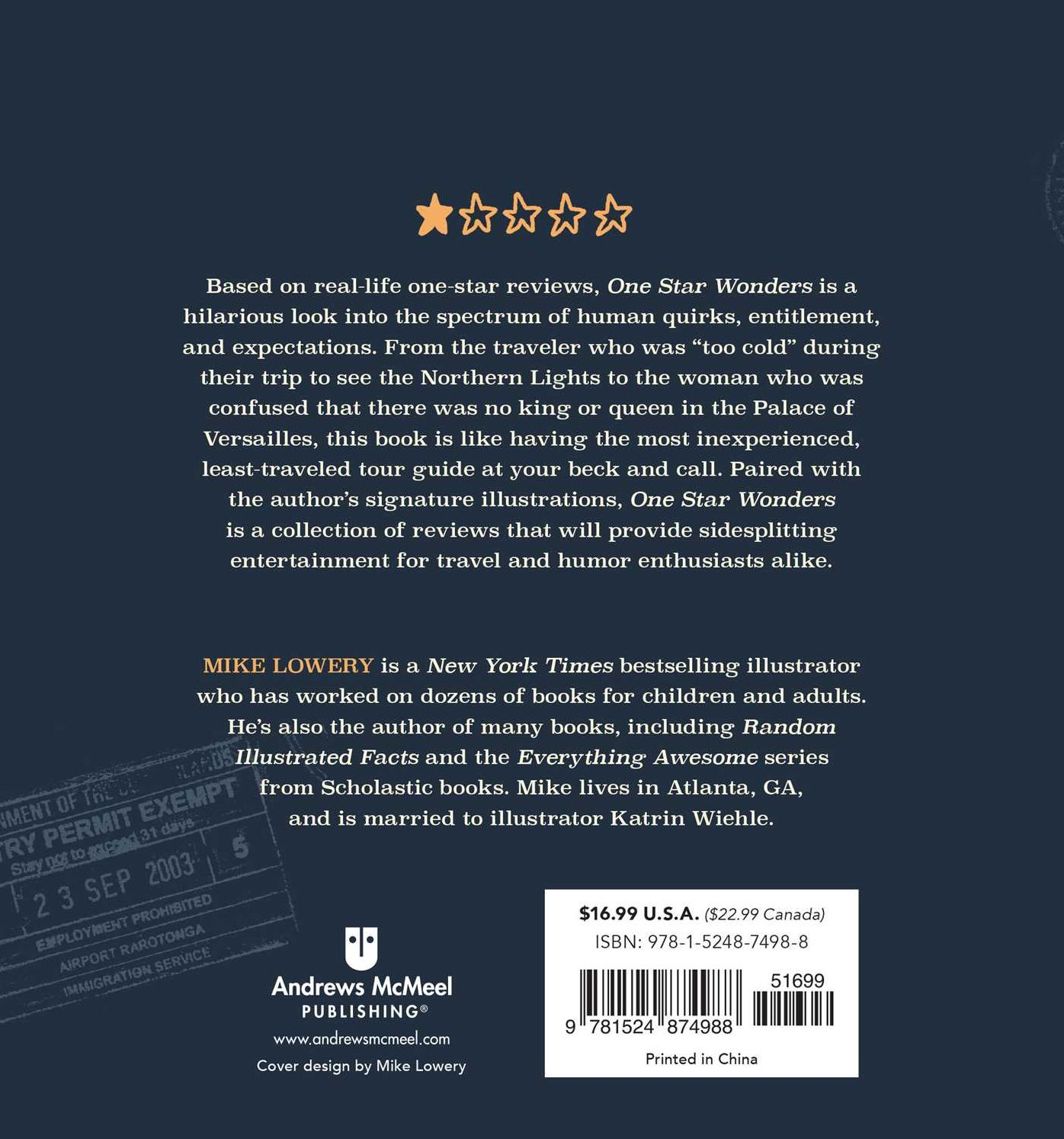 Paired with Mike’s signature illustrations. One Star Wonders is a collection of sidesplitting reviews that will provide endless entertainment for travel and humor enthusiasts alike.