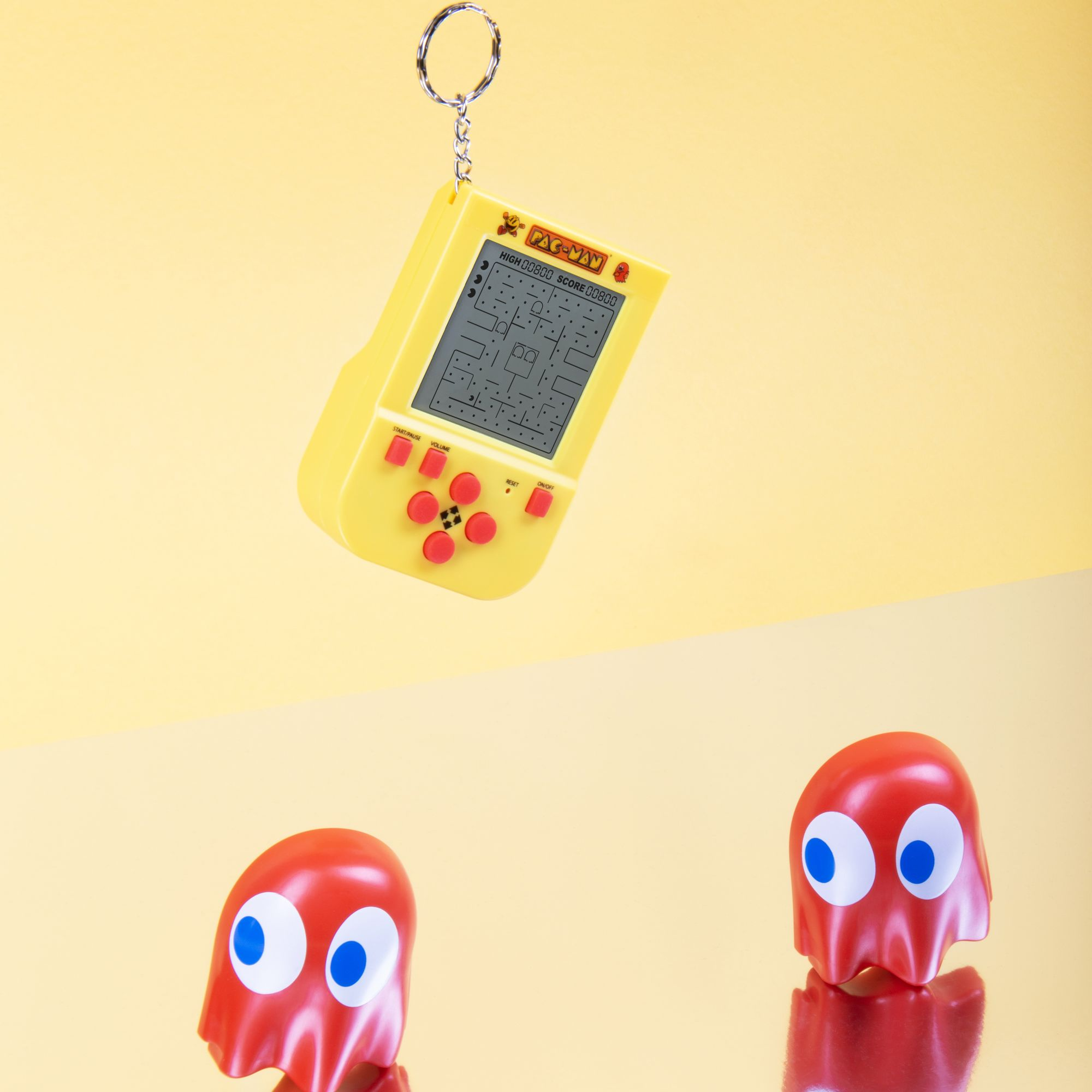 Enjoy the classic PAC-MAN game with this keyring arcade perfect for gifting. How Does it Work? Black and White Screen. This pocket-sized device contains the classic arcade game in all its 8-bit glory.