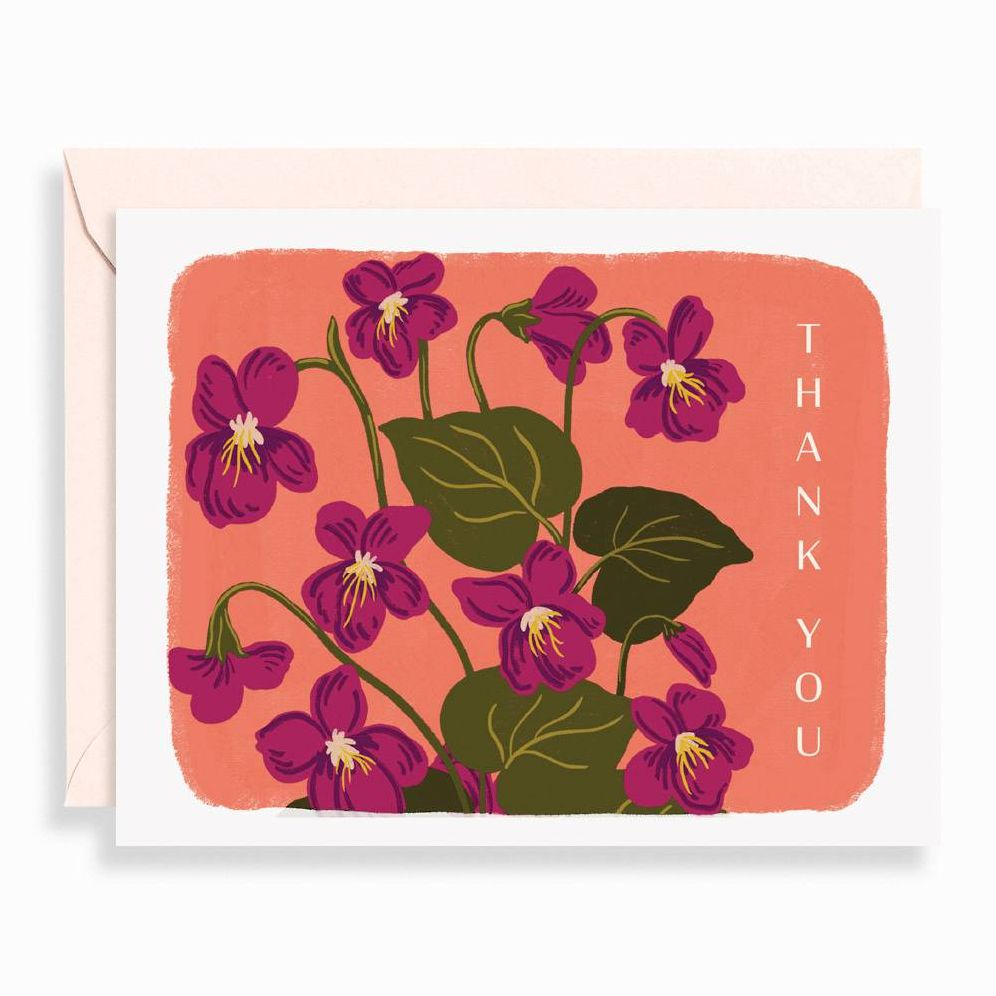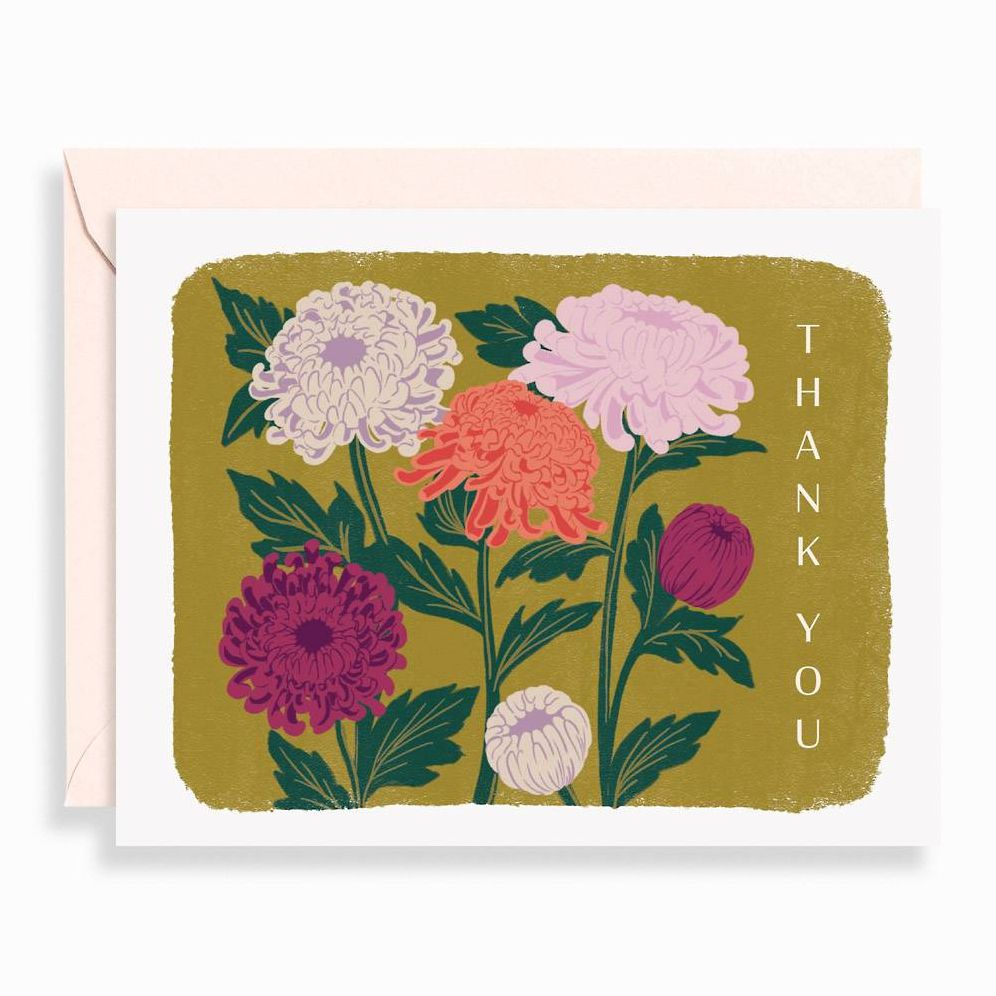 Folded thank you cards in painted floral designs. Blank inside. Set of 12. with four of each design. Comes with envelopes. color may vary.