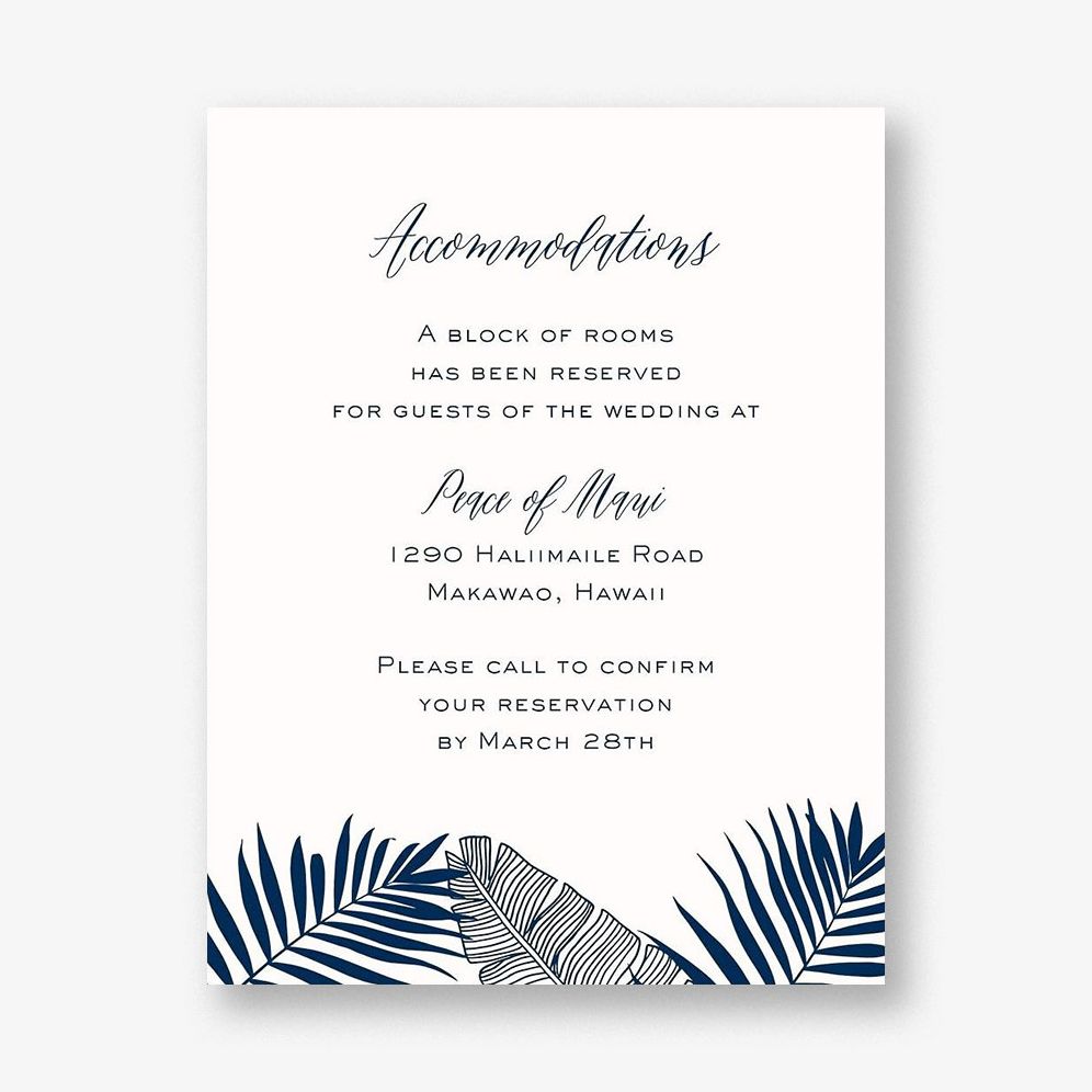 Pretty illustrated palms adorn the bottom of this information card from our designers at Paper Source. Printed on Mohawk superfine white 130 lb. card stock that is soft to the touch and matches our superfine white envelopes. Paper is FSC certified and made using wind power.
