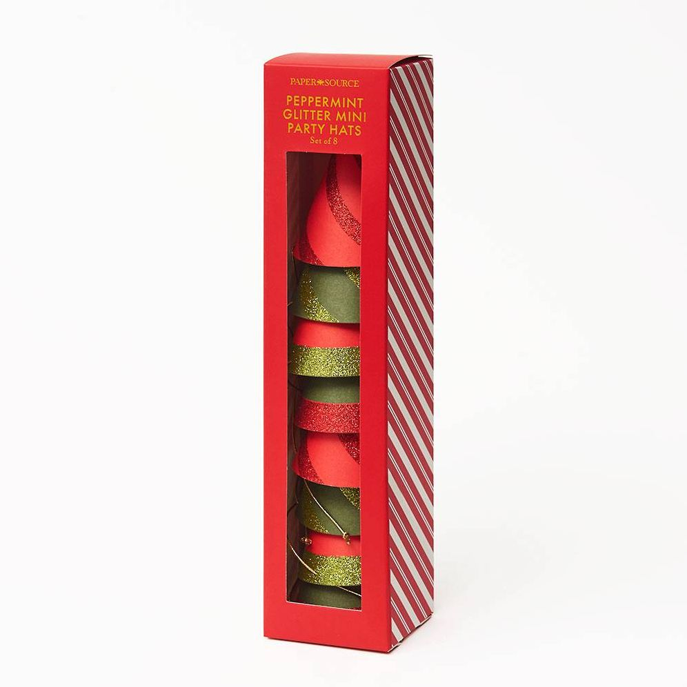 These adorable peppermint glitter mini party hats are perfect to give to your guests to wear. They have adorable glitter stripes. You are sure to get compliments if you wear these!