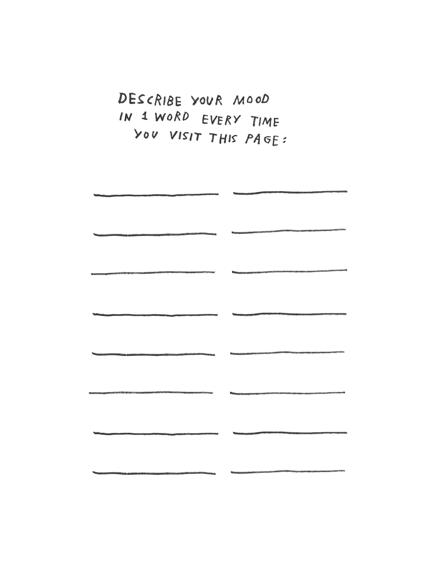 Unlike a linear journal. this book can be opened up to any page. encouraging and engaging readers time and time again through continued use. Rather than simply complete tasks and turn pages. users are encouraged to leave their mark. and if they land on the same page days or weeks later. they can review. reflect. and revise their previous response.