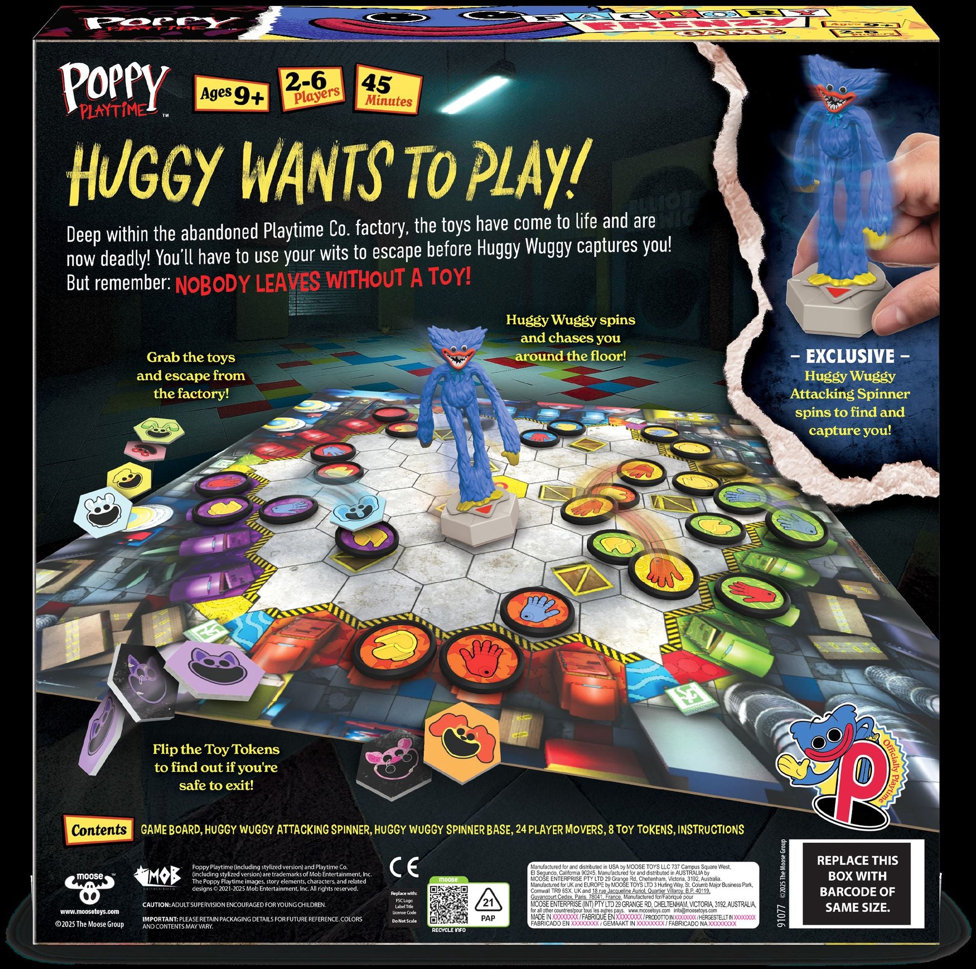 Navigate your way across the Playtime Co. factory floor to your designated exit. but watch out! The toys have come to life and are now deadly. Use your wits to escape before Huggy Wuggy captures you! But remember: nobody leaves without a toy! Pkg Dims: W 10.5 D 3.0 H 10.5