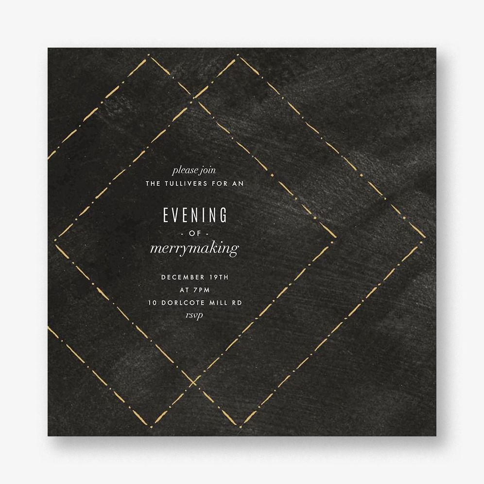 Your personal details are framed within geometric shapes on this posh holiday invitation from Kelly Wearstler for Paperless Post.