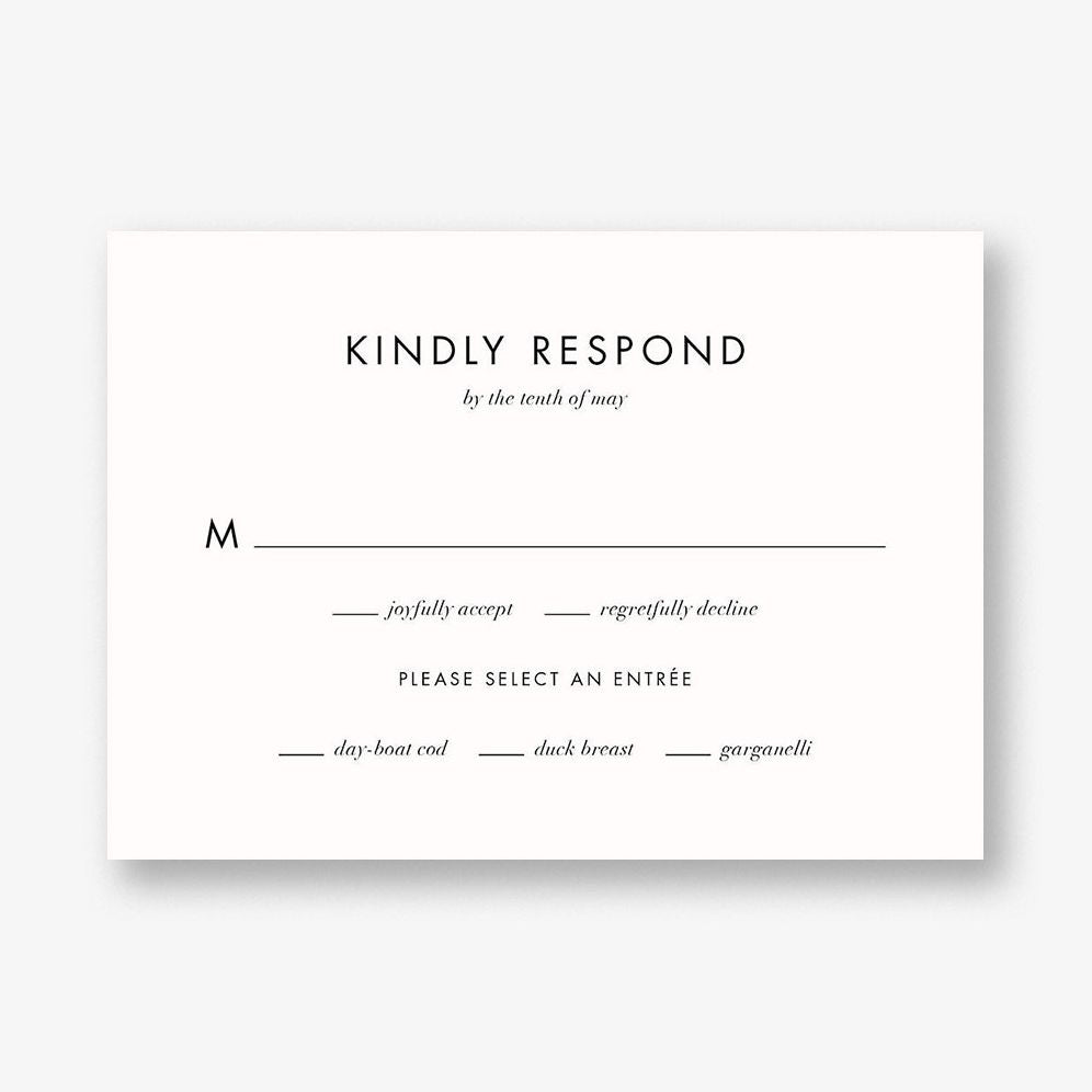 The Pressed Wildflowers Response Card is a simple and fitting complement to the lovely Pressed Wildflowers suite of wedding cards. designed by Rifle Paper Co. for Paperless Post. Printed on Mohawk superfine white 130 lb. card stock that is soft to the touch and matches our superfine white envelopes. Paper is FSC certified and made using wind power.