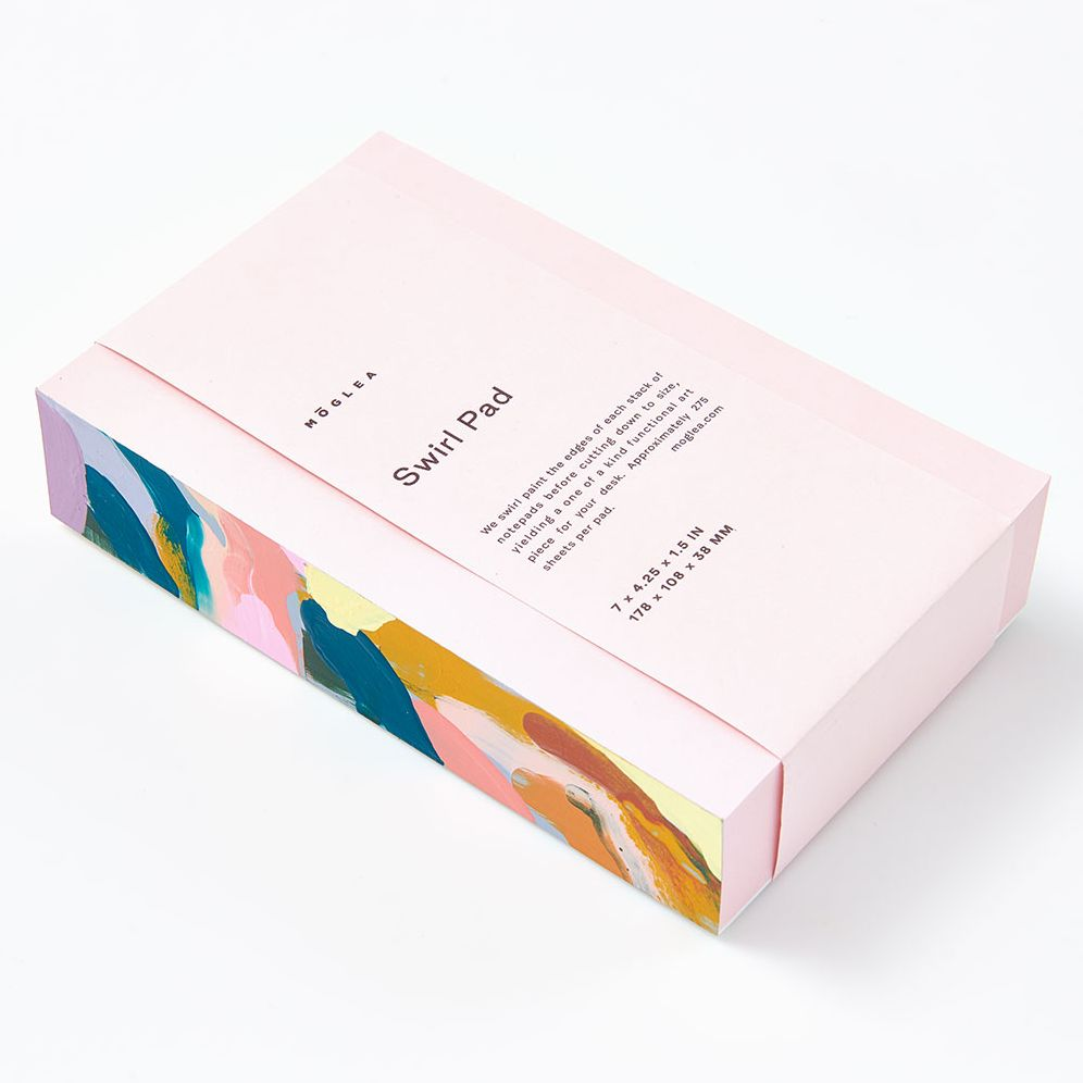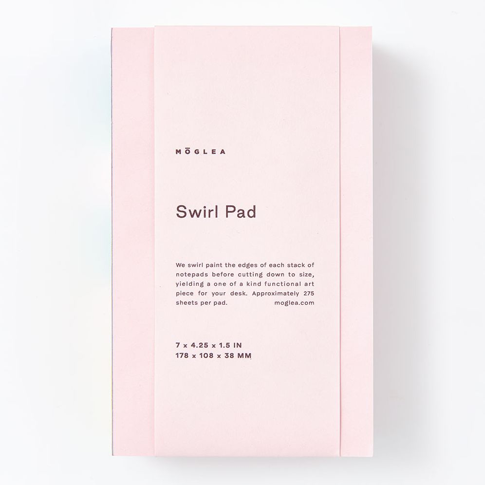 Notepad with one-of-a-kind swirl painted gummed edge. Each pad is expertly hand-painted. padded. and assembled in our studio.