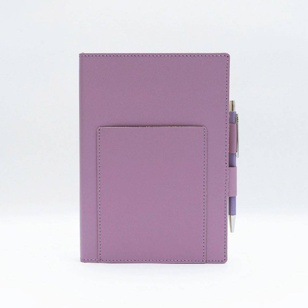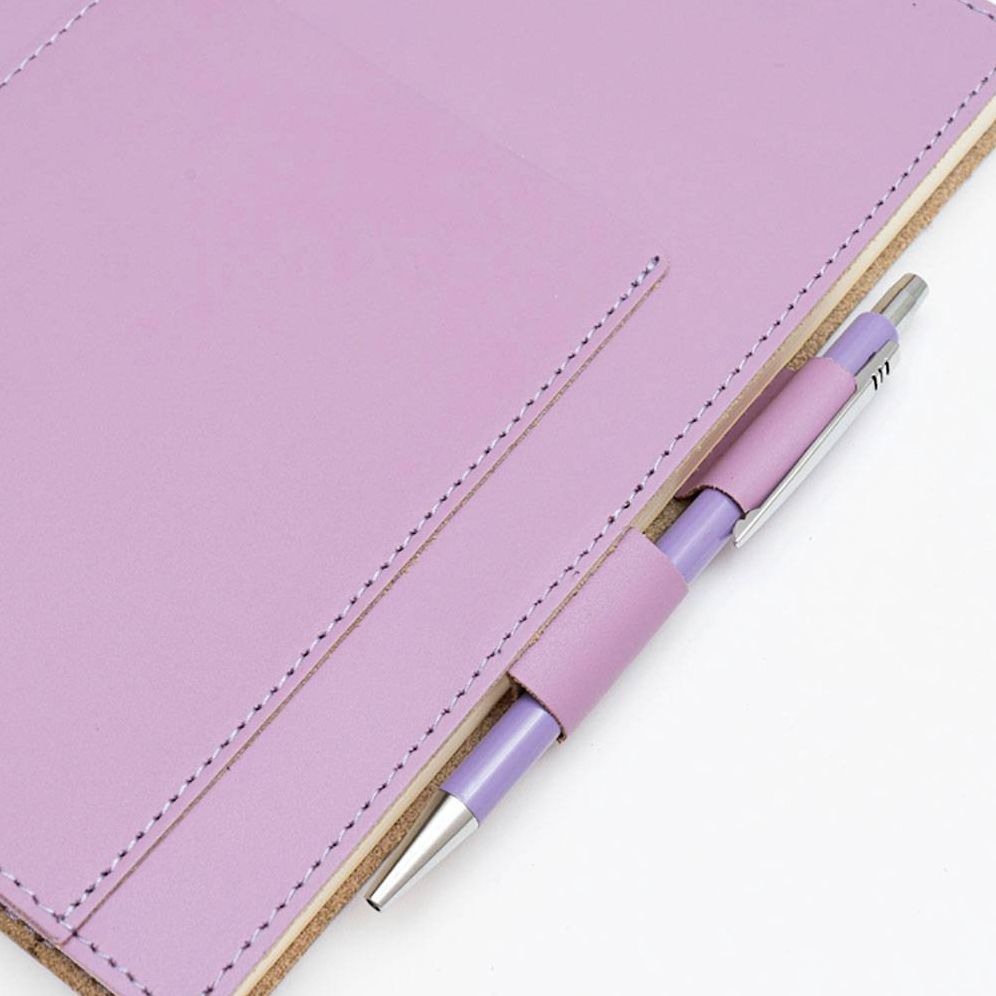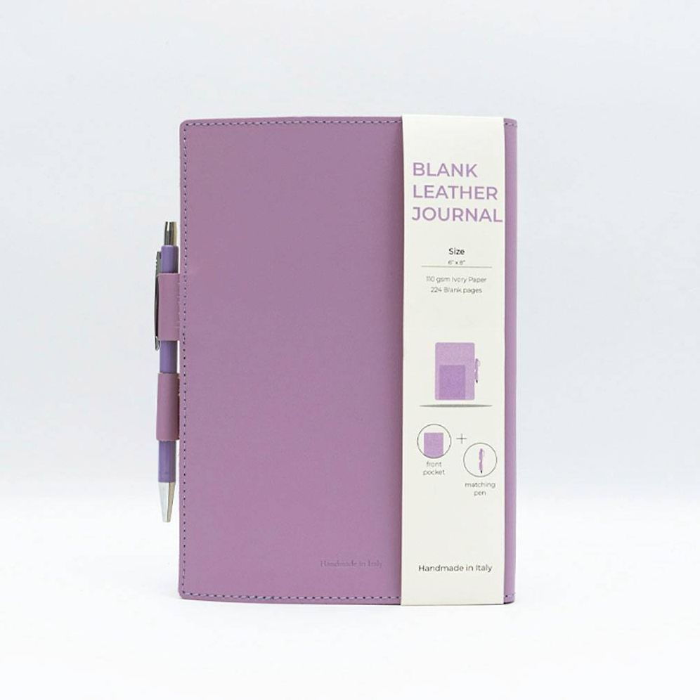 Smooth Italian genuine leather purple journal with a button closure. The 110 gram ivory blank pages are FSC certified recycled. Handmade in Florence. Italy.