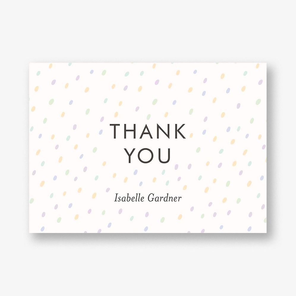 Playful rainbow dots frame the cover of these thank you notes. perfect for sending your gratitude after a baby shower or sending a message to loved ones. Designed in-house at Paper Source.