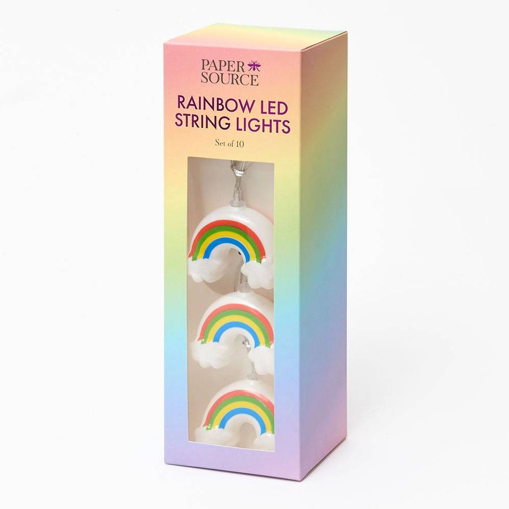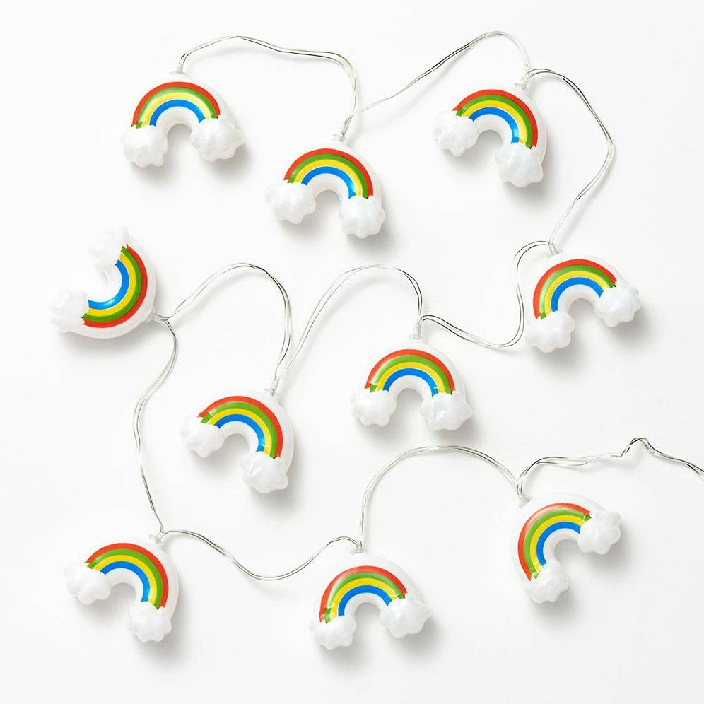 Make your home or office space more colorful with these chunky rainbow plastic LED string lights. The set includes 10 strings of lights. stretching a total of 54 (4 and a half feet) long.