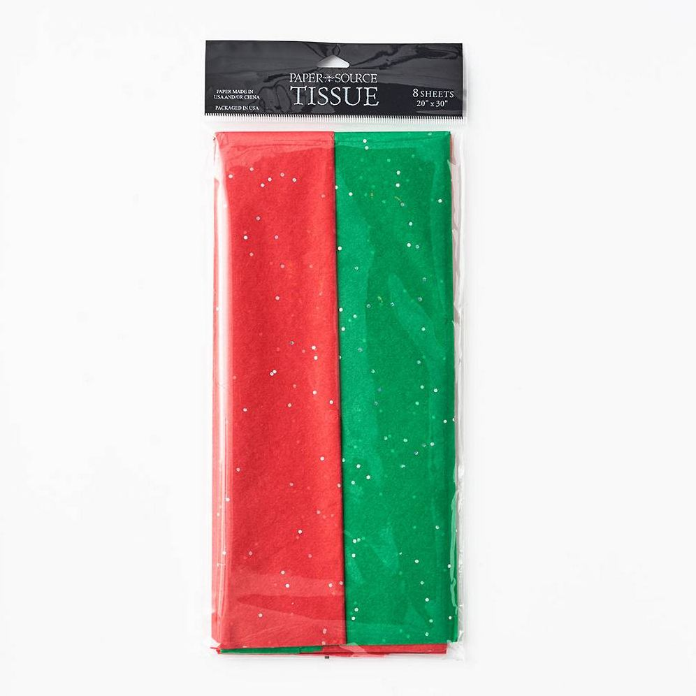 Complete your gift wrap with this festive set of tissue paper! It gemstone red and green tissue. Add fun and pizzazz to gift bags. boxes or holiday arts and crafts. Set of 8 sheets of tissue.