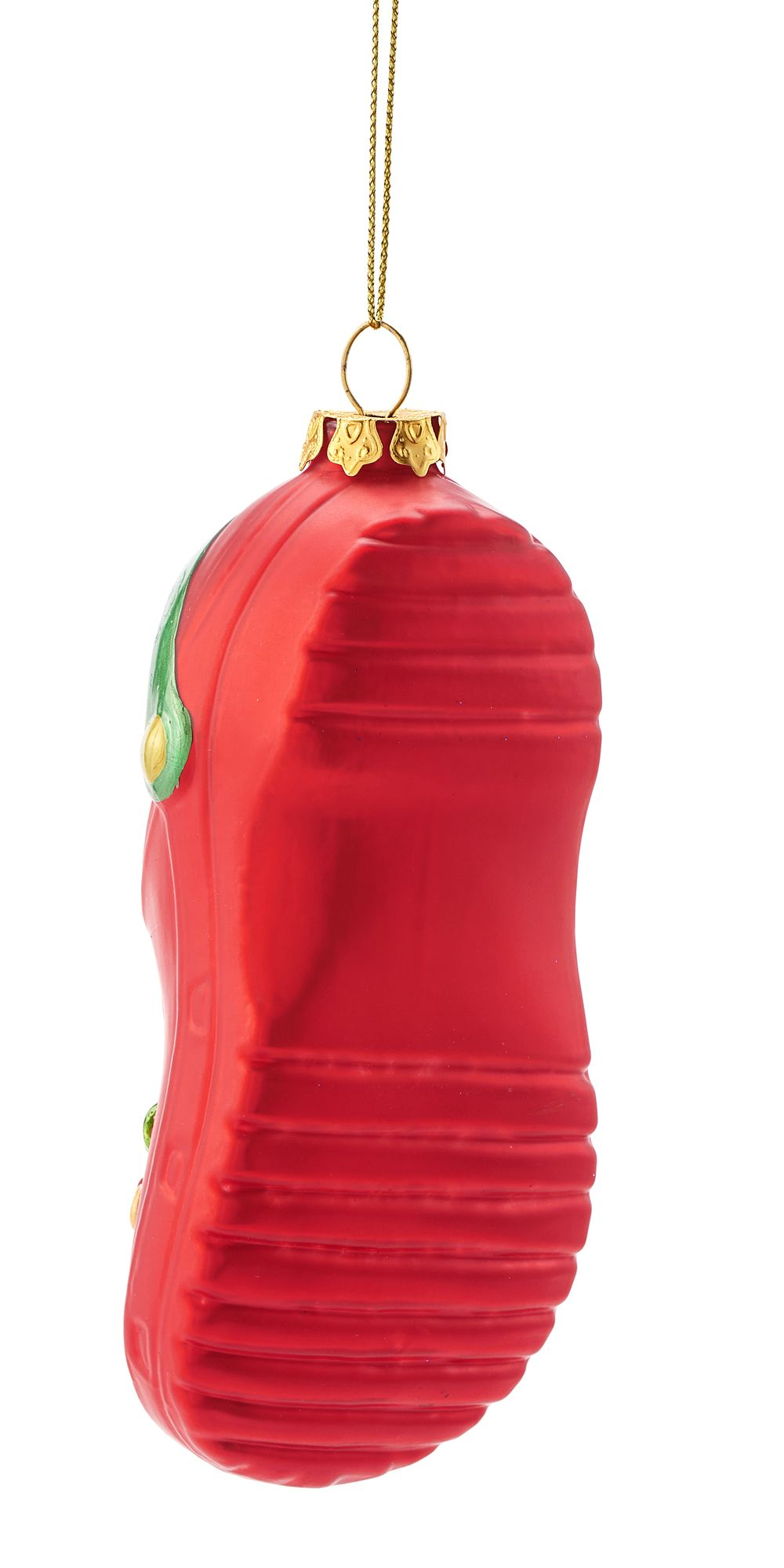 Add this cheerful glass clog ornament to your Christmas tree for a fun. holiday themed addition!
